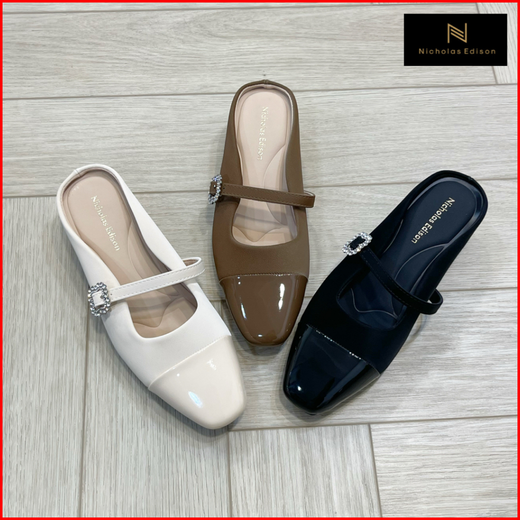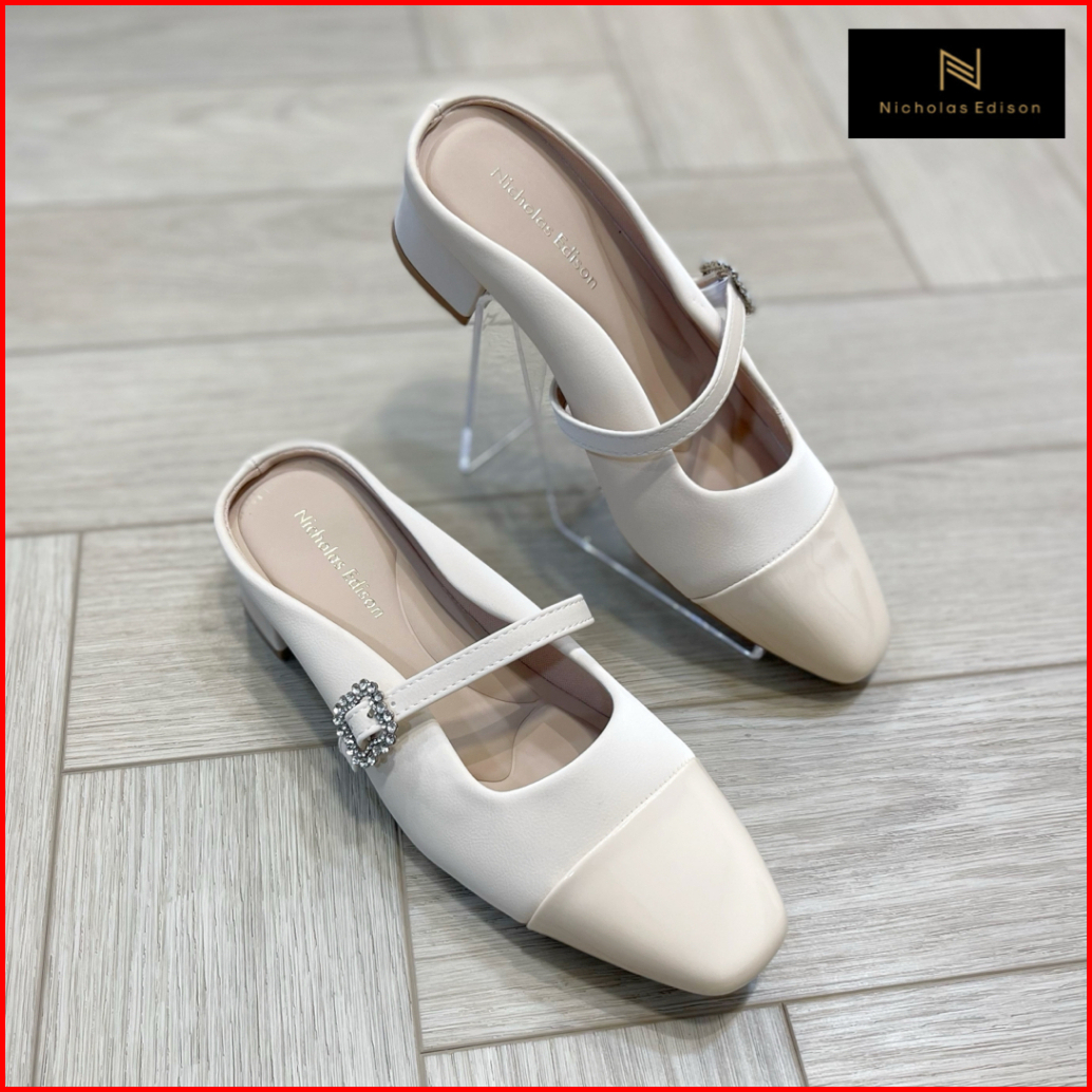 Nicholas Edison Heel Sora Sandal Mules Slip On Square Tali Gesper Terbaru