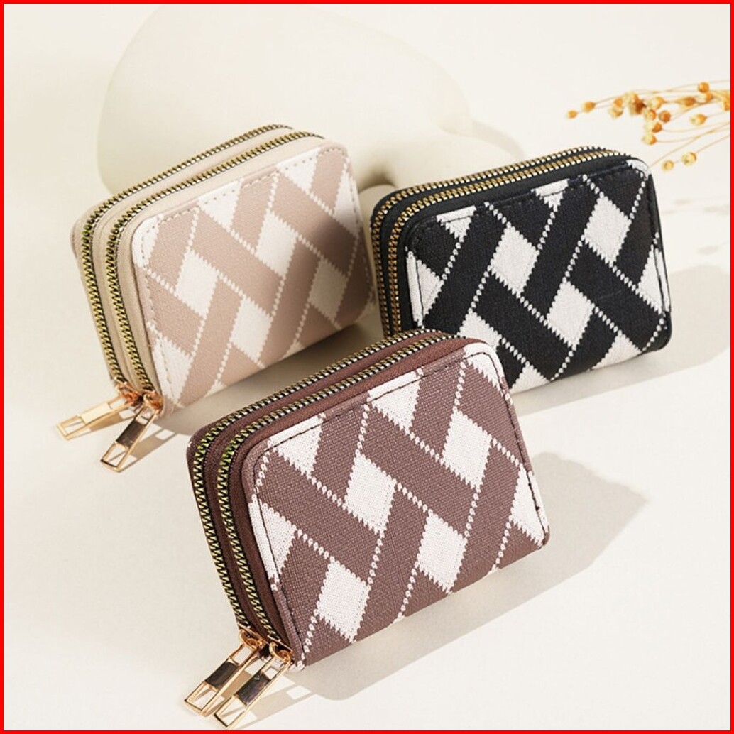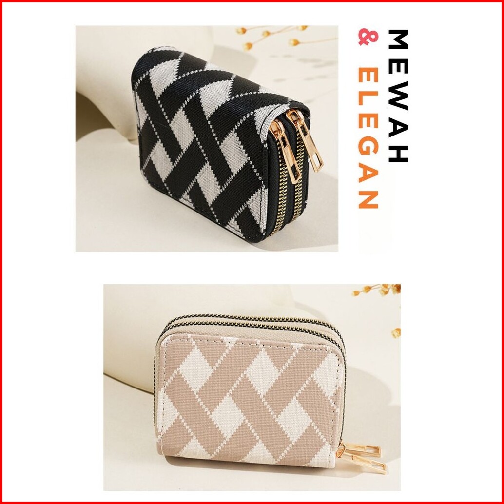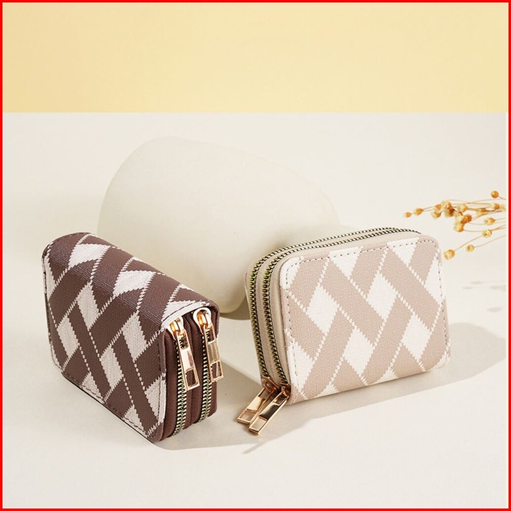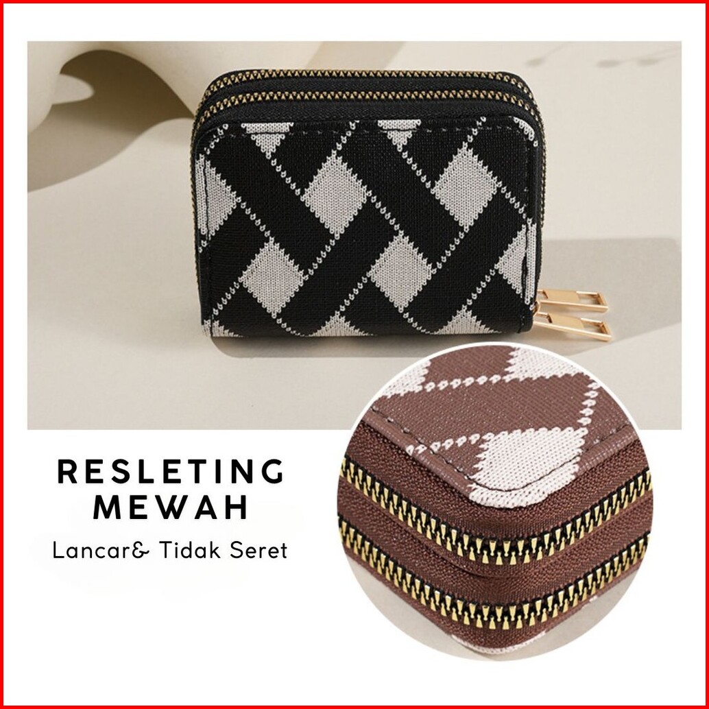 Dompet Kartu Wanita 2 Resleting Simple Mini Narumi Kulit Motif Branded Mewah Cantik Kekinian Murah