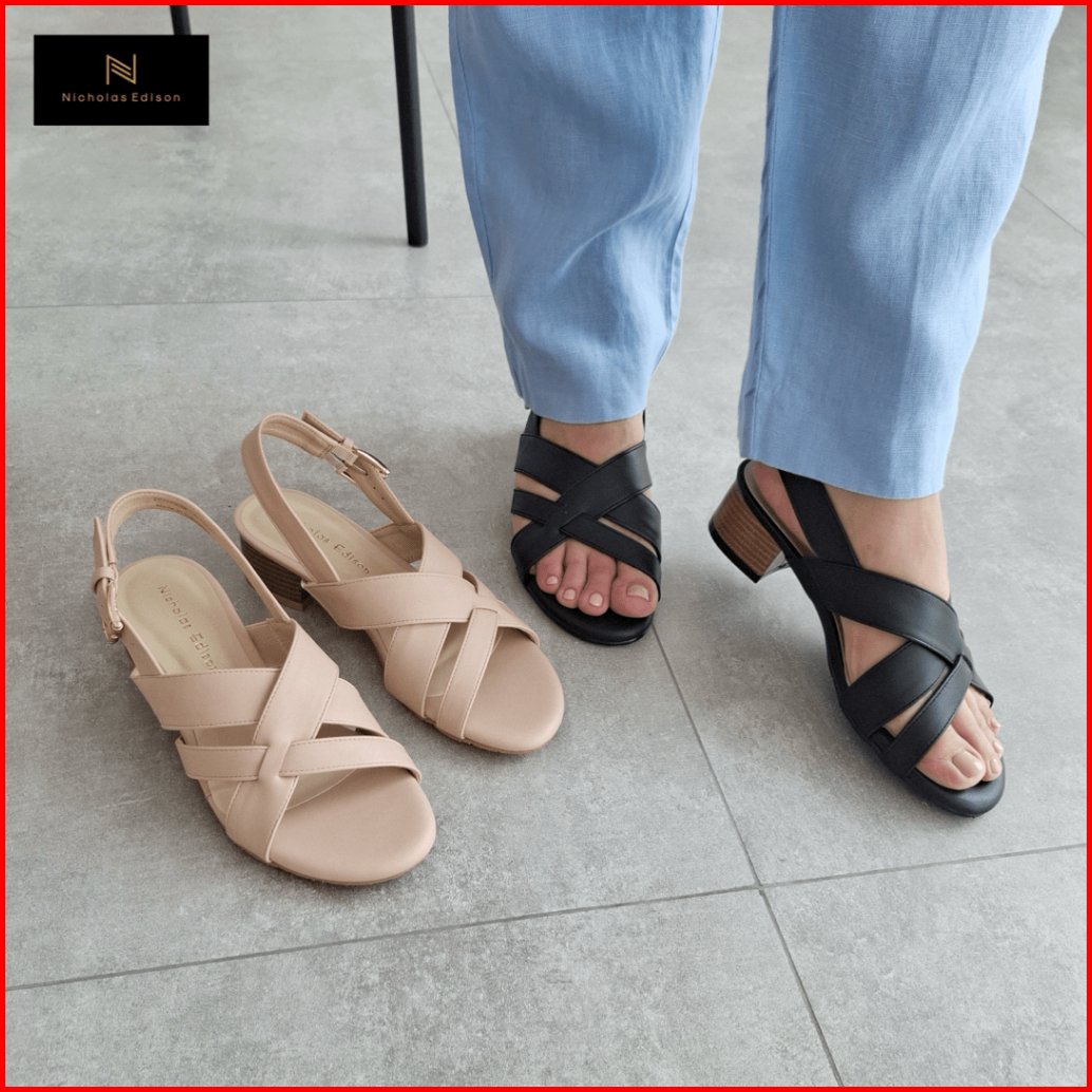 Nicholas Edison Heel Suvira Sandal Block Heels Garis Low Heels Terbaru