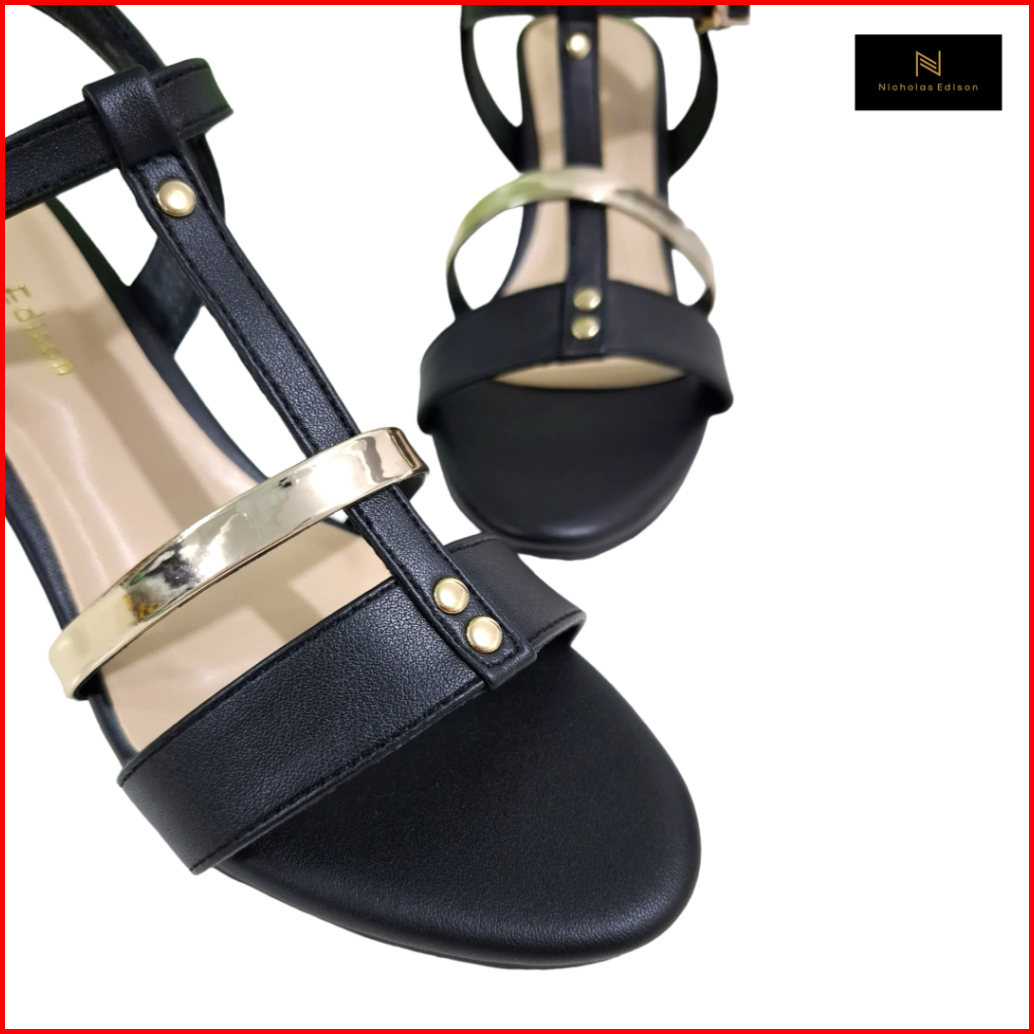 Nicholas Edison Heel Saba Sandal Block Heels Garis Strappy Terbaru