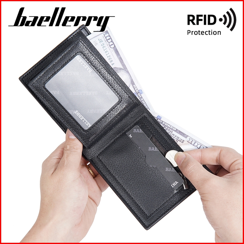 Baellerry D3041 Dompet Pria Rfid Protect Bahan Kulit Pu Leather Premium Baeos