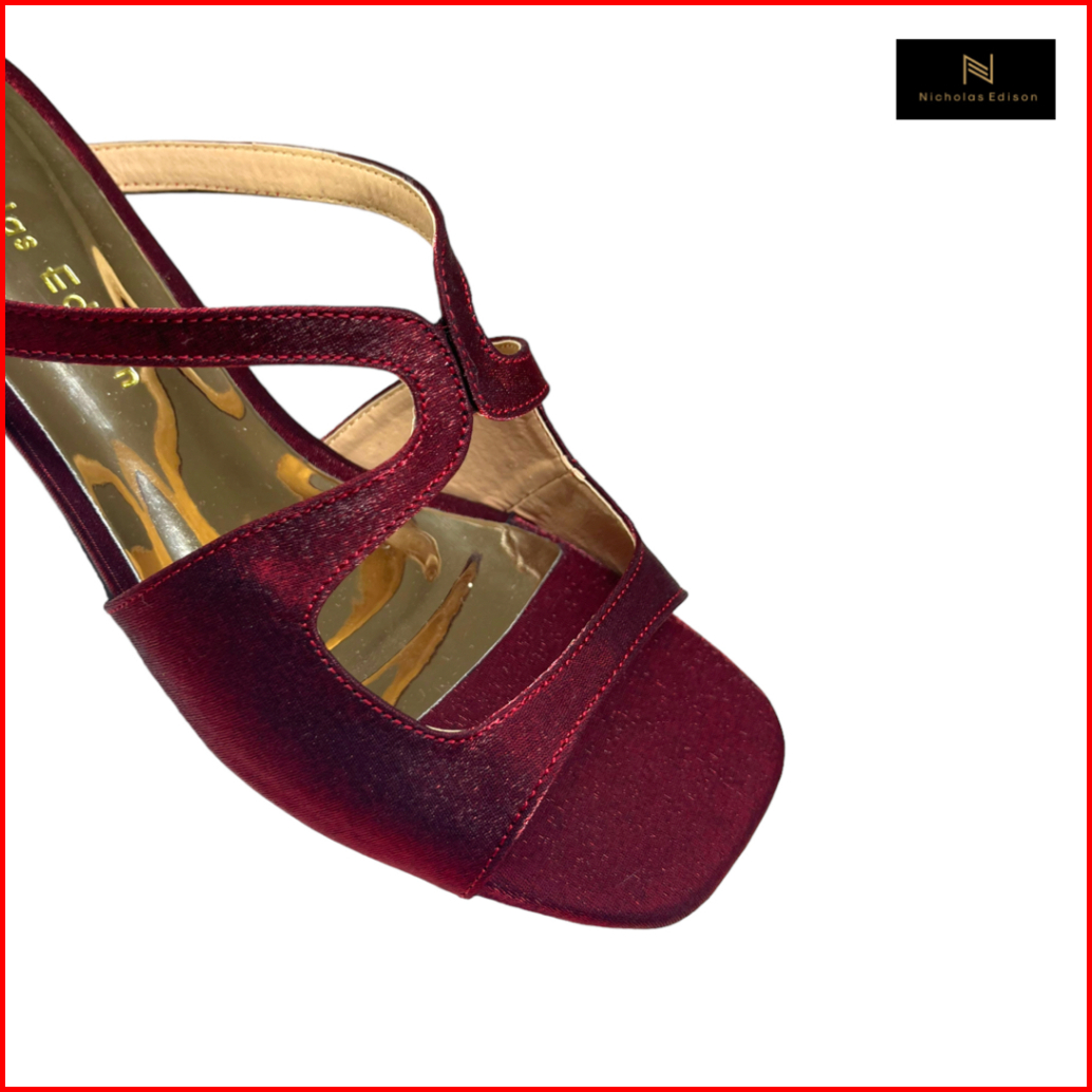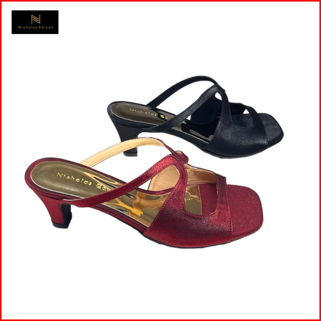 Nicholas Edison Heel Aruna Sandal Mid Low Heels Satin Slip On Terbaru