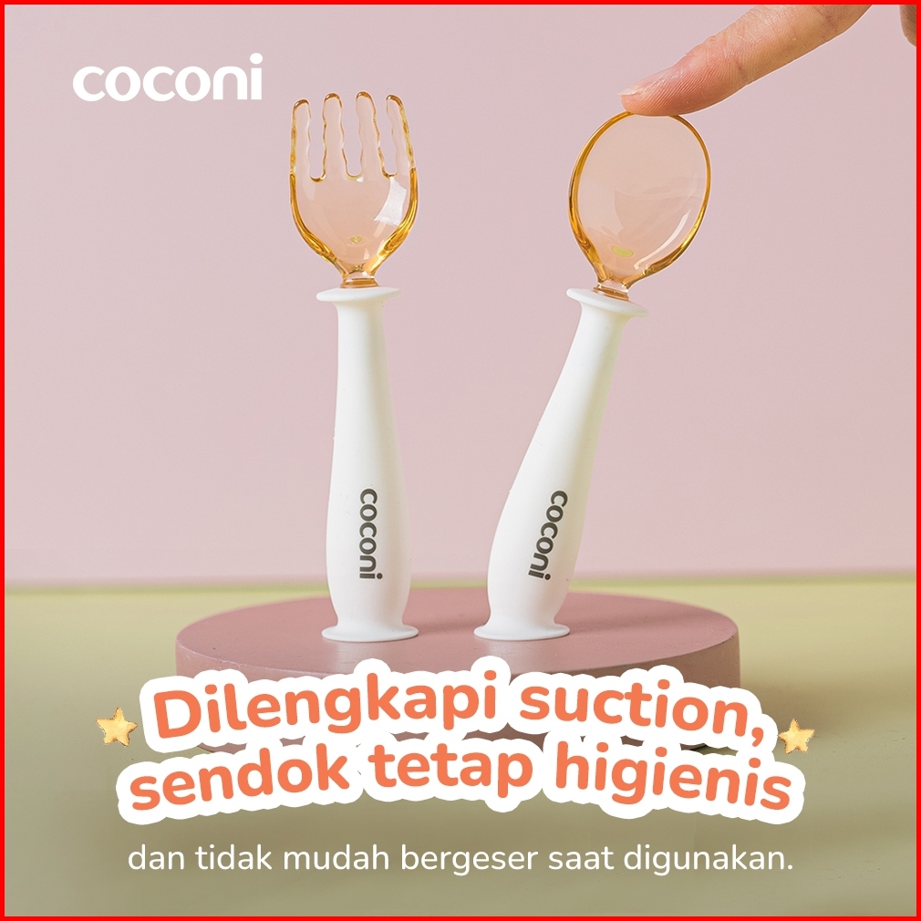 Coconi Lil Chew Baby Cutlery Ppsu 2pcs Sendok Garpu Anak Ppsu Dilengkapi Dengan Suction