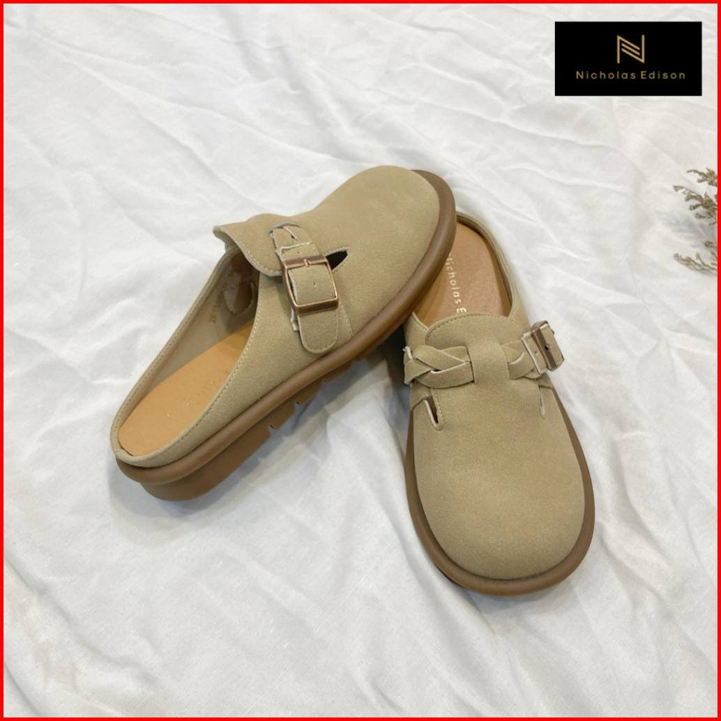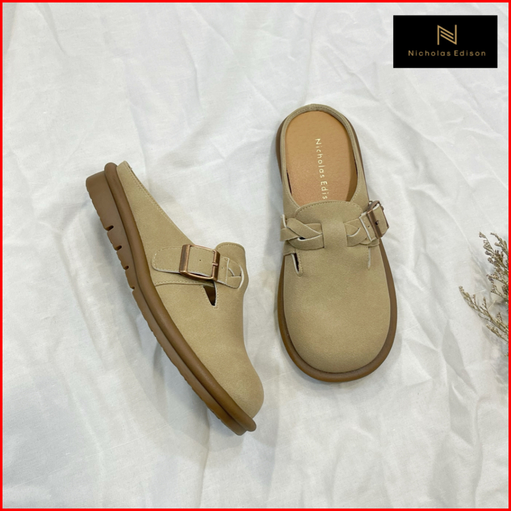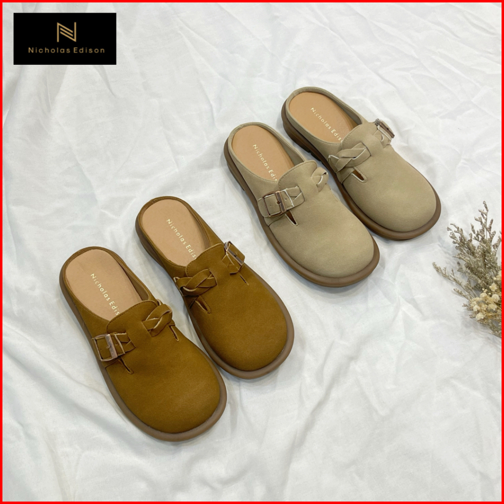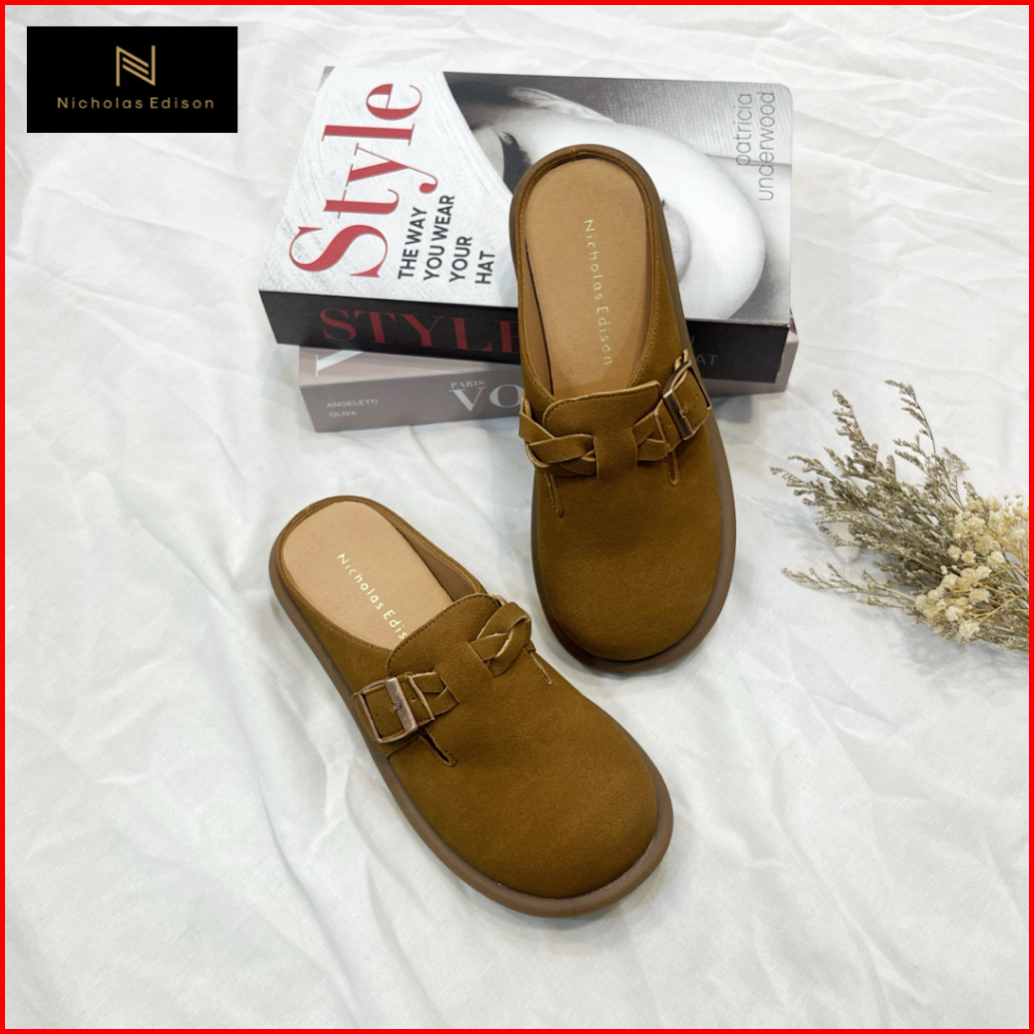 Nicholas Edison Flat Ezra Sandal Mules Slip On Velvet Terbaru