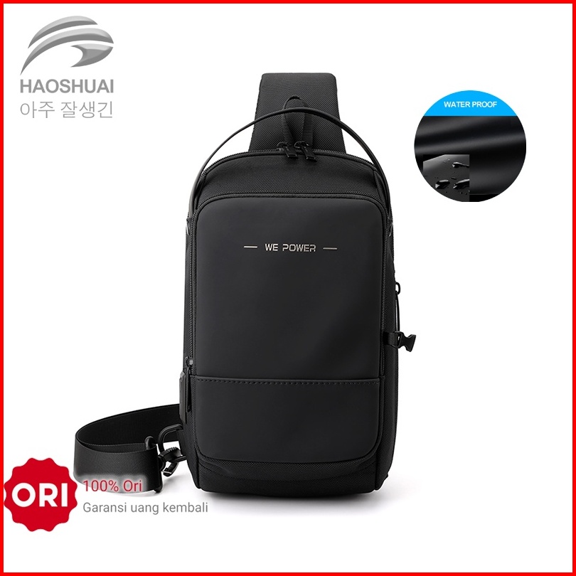 Tas Selempang Pria Haoshuai 3001 Shoulder Bag Usb Port Anti Maling Bahan Premium Waterproof Baeos