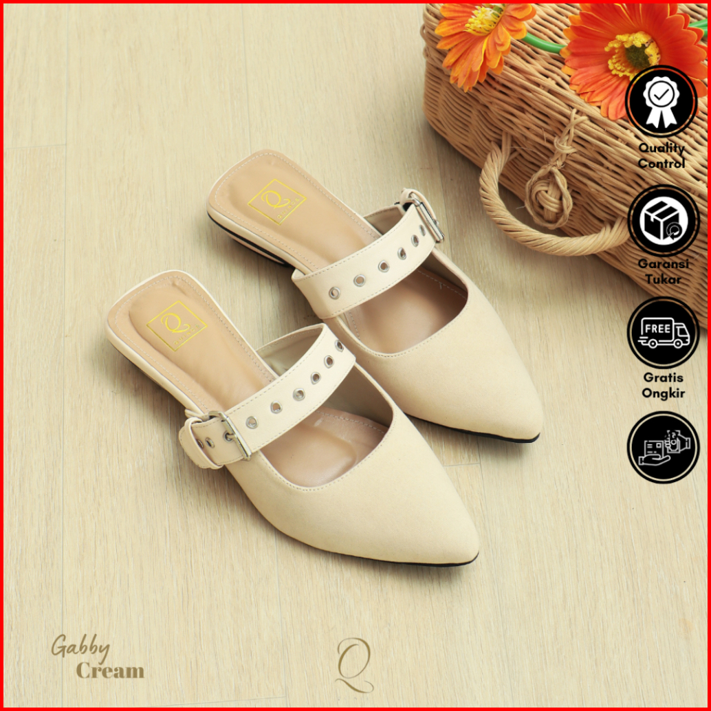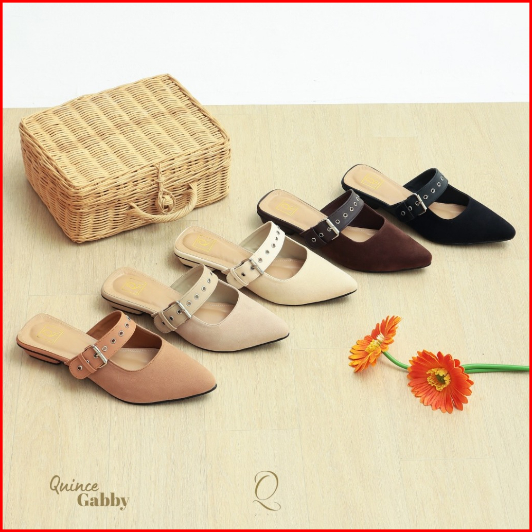 Quince Gabby Mules Heels 3cm Sepatu Selop Suede Sepatu Slip On Heels Wanita