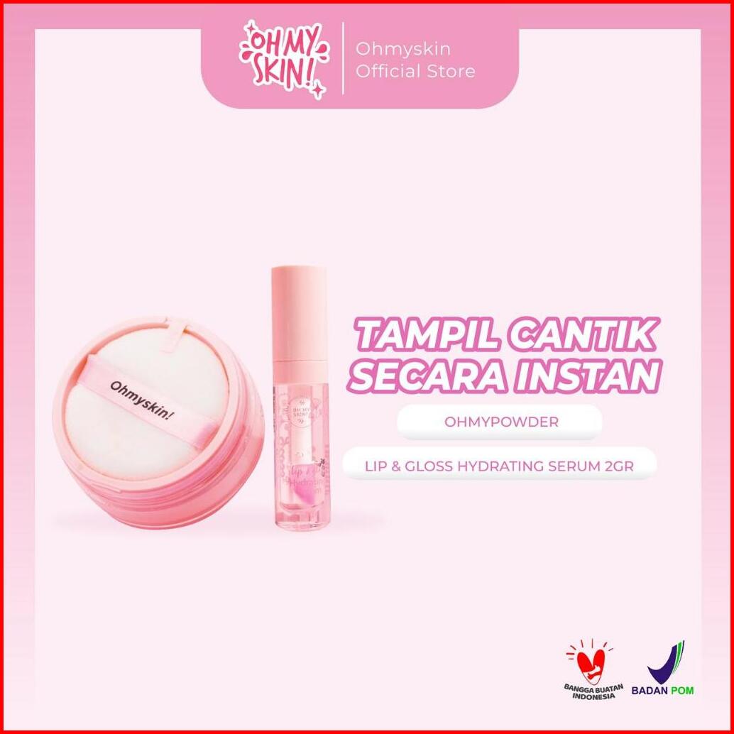 Ohmyskin Paket Bundling Lip Gloss Hydrating Serum 2gr Oh My Powder