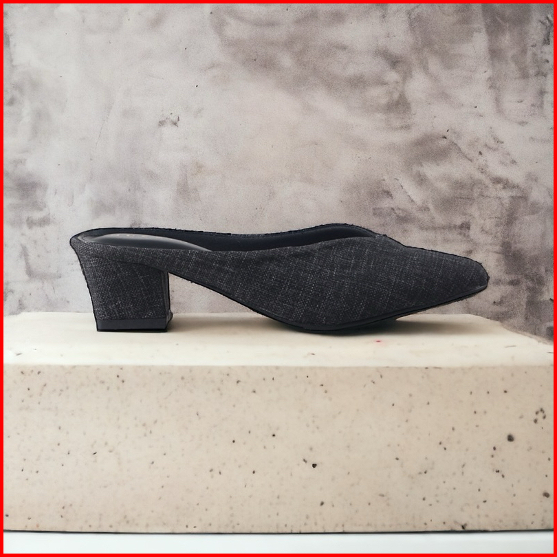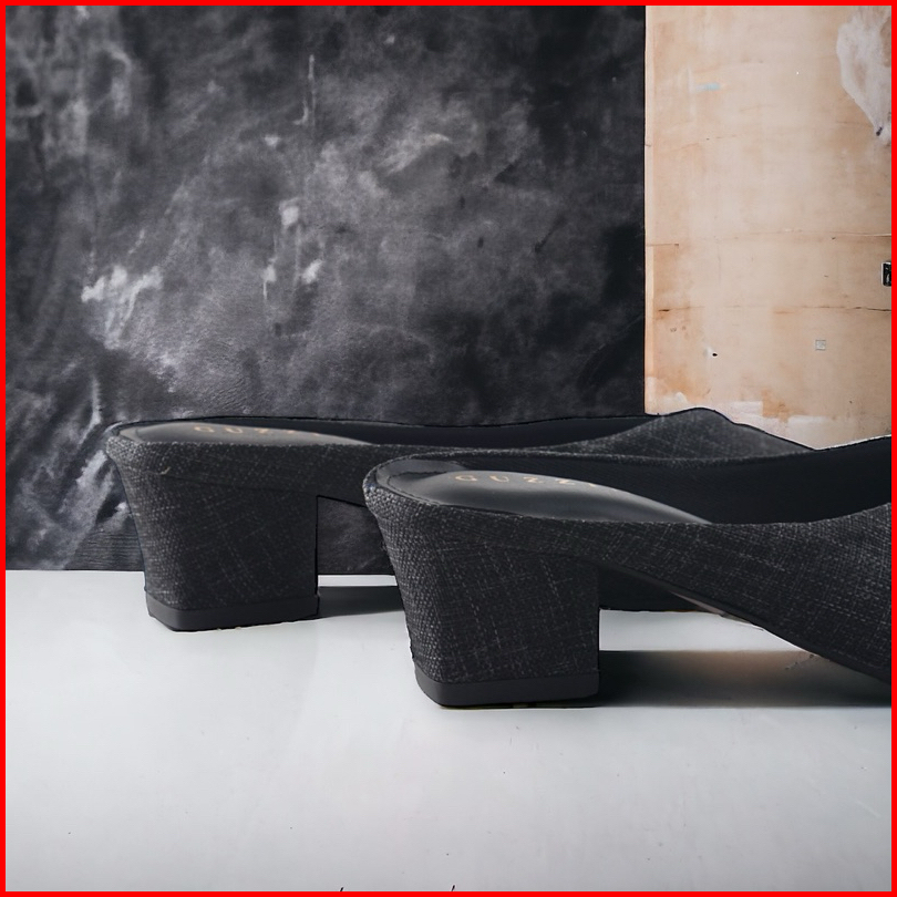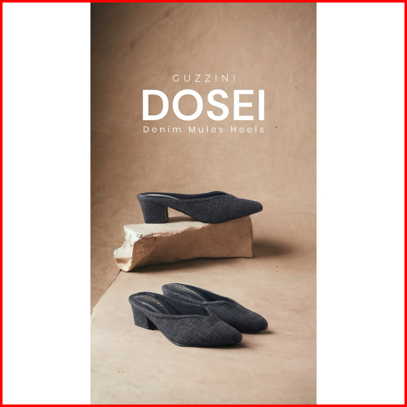 Guzzini - Dosei Denim Mules Heels Sepatu Bustong Wanita Hak 5cm Dm 01