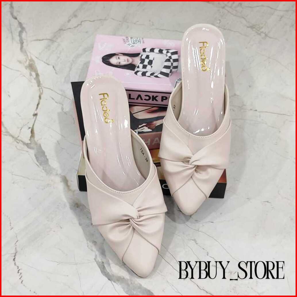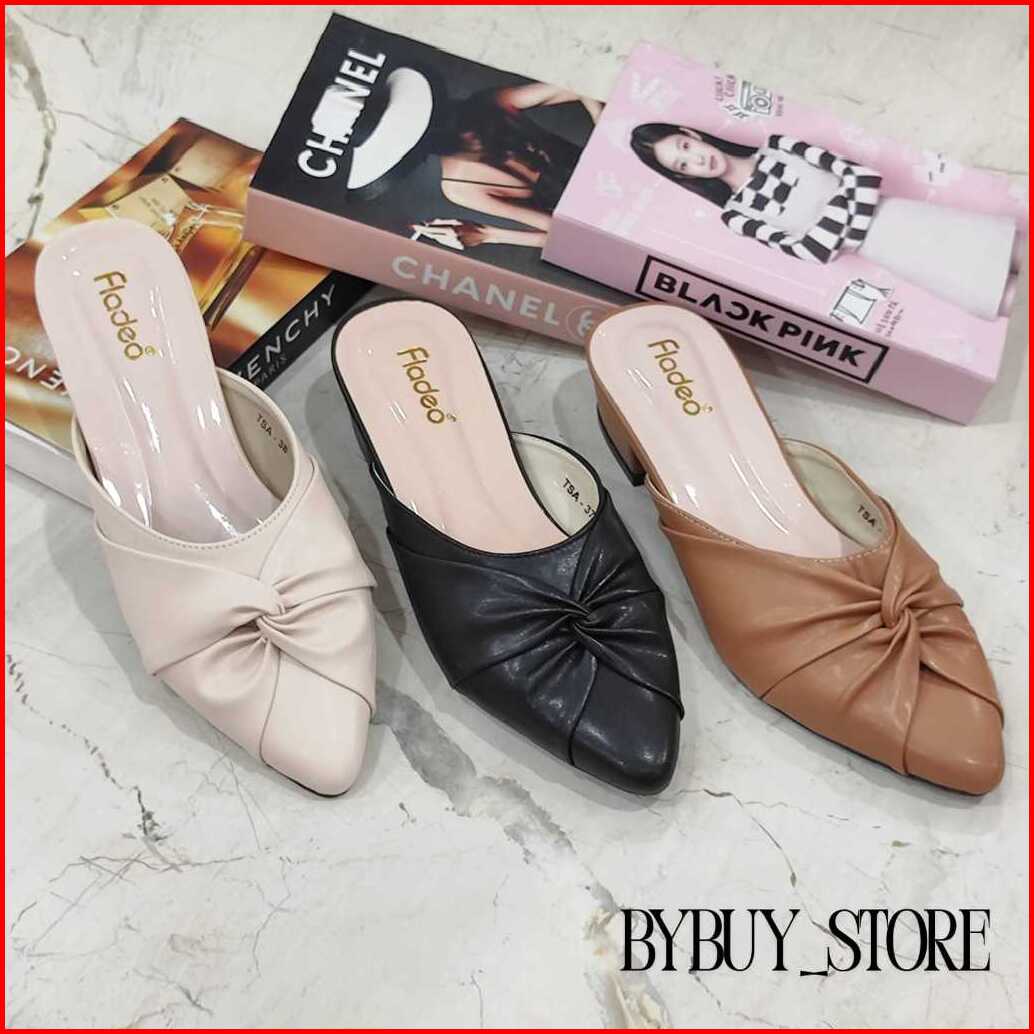 Sandal Wanita Terbaru Hak 3cm Fladeo Kepang Pita