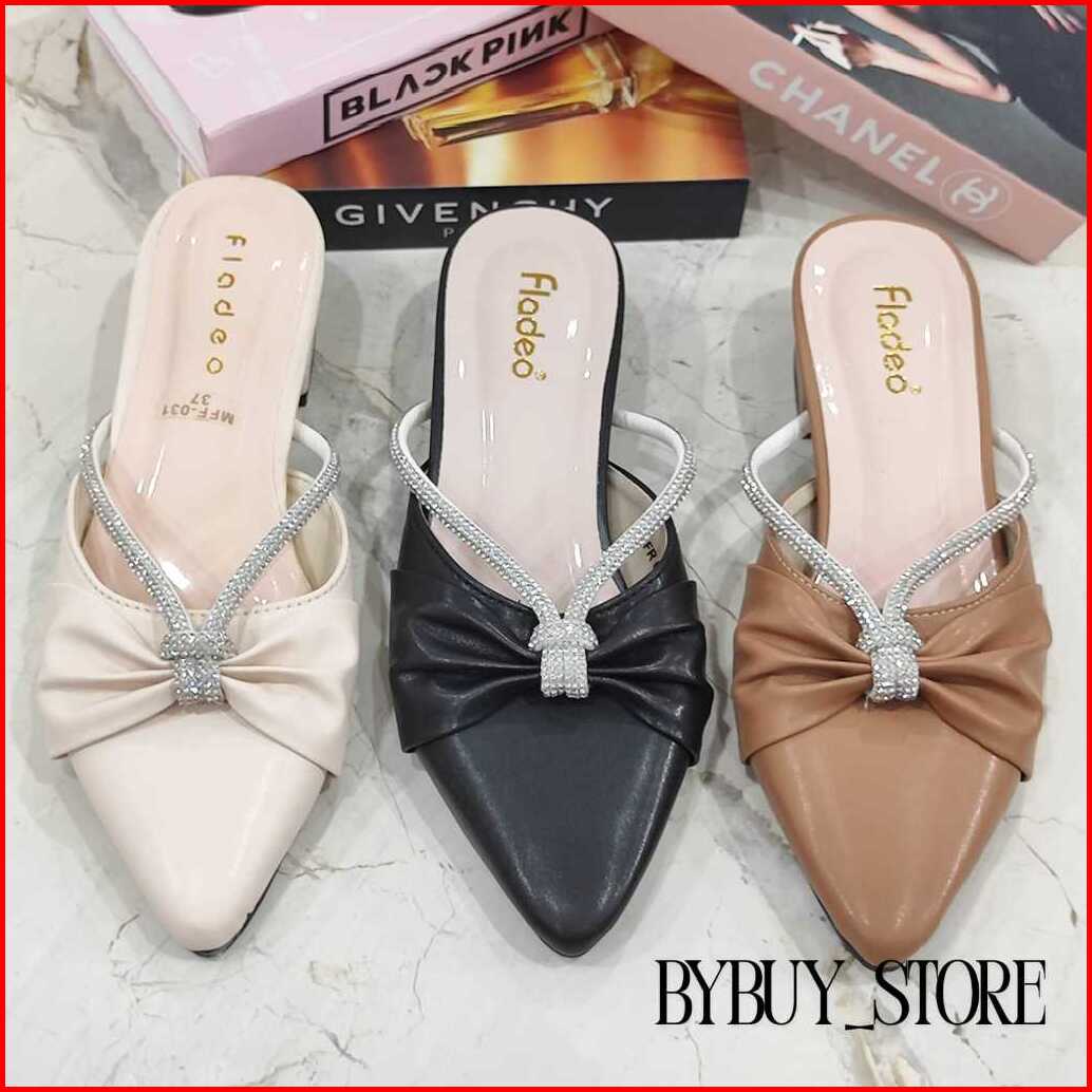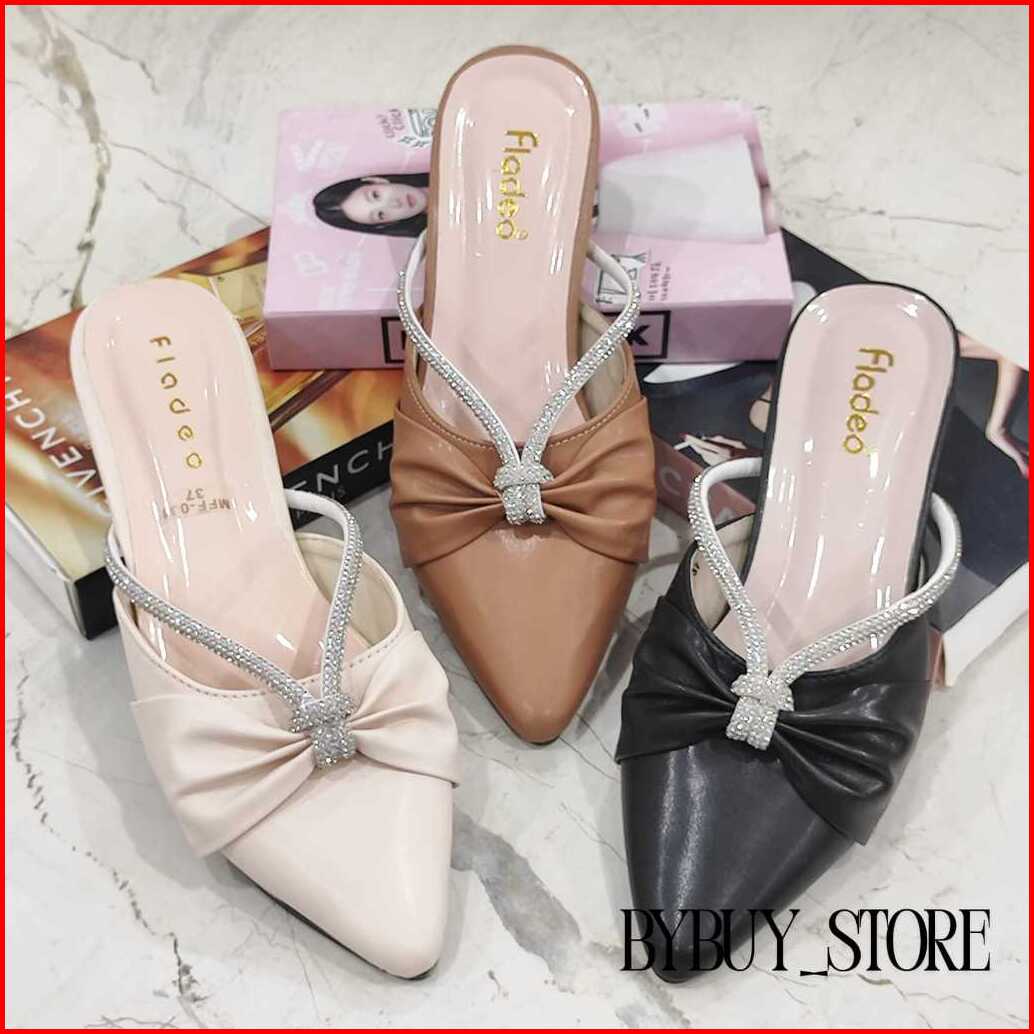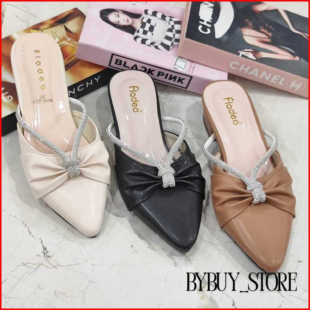 Sandal Mules Termurah Hak 3cm Fladeo Permata Silang