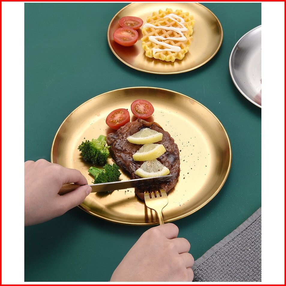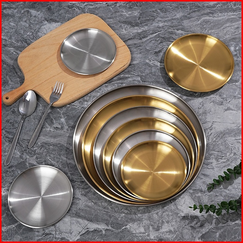 Bakindo Piring Makan Sultan Piring Bulat Stainless Steel Piring Korea Aesthetic Dekorasi Stainless Steel European