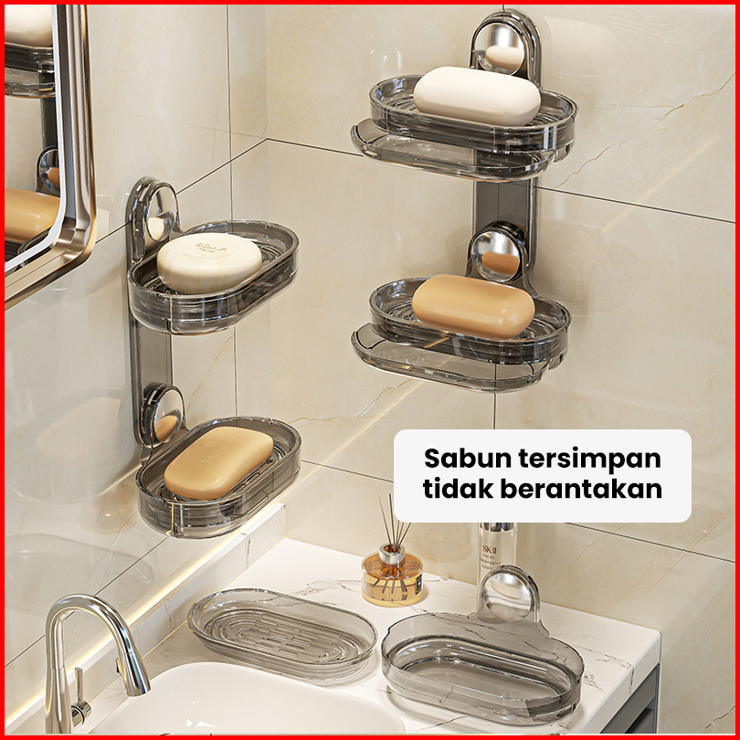 Dejavu Tempat Sabun Batang Dinding Rak Tempat Sabun Tempel Tempat Sabun 2 Tingkat Plastik Kamar Mandi Serbaguna Hrd340