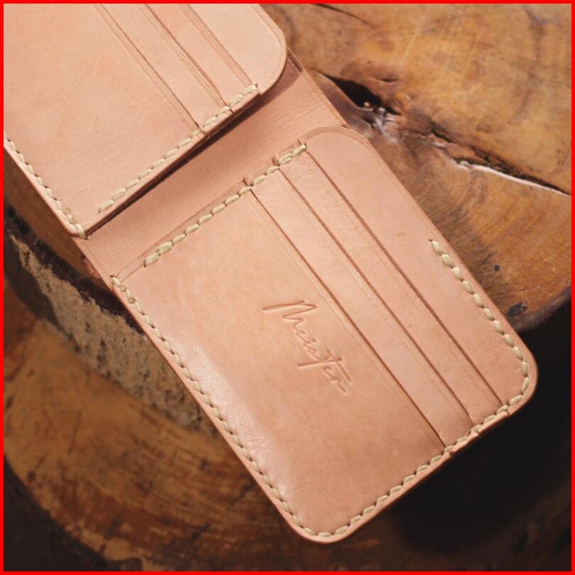 Dompet Pria Kulit Vegtan Premium Short Bifold Vegtan Leather Wallet Natural