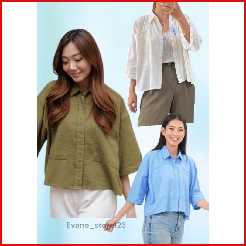 Kemeja Linen Wanita Atasan Wanita Korean Style Kemeja Kantong Terbaru