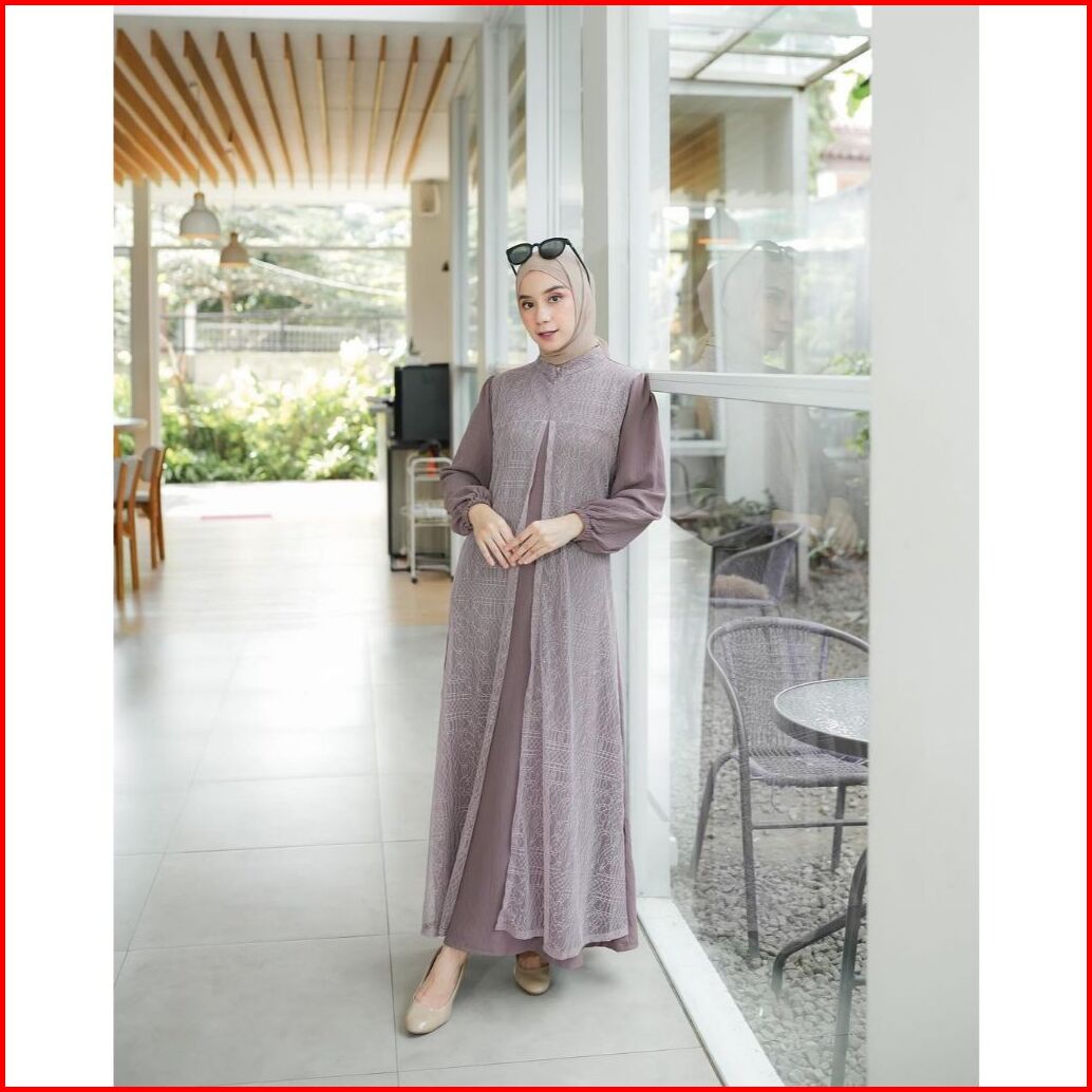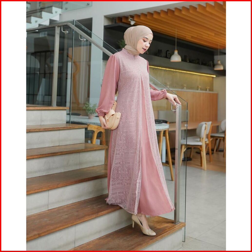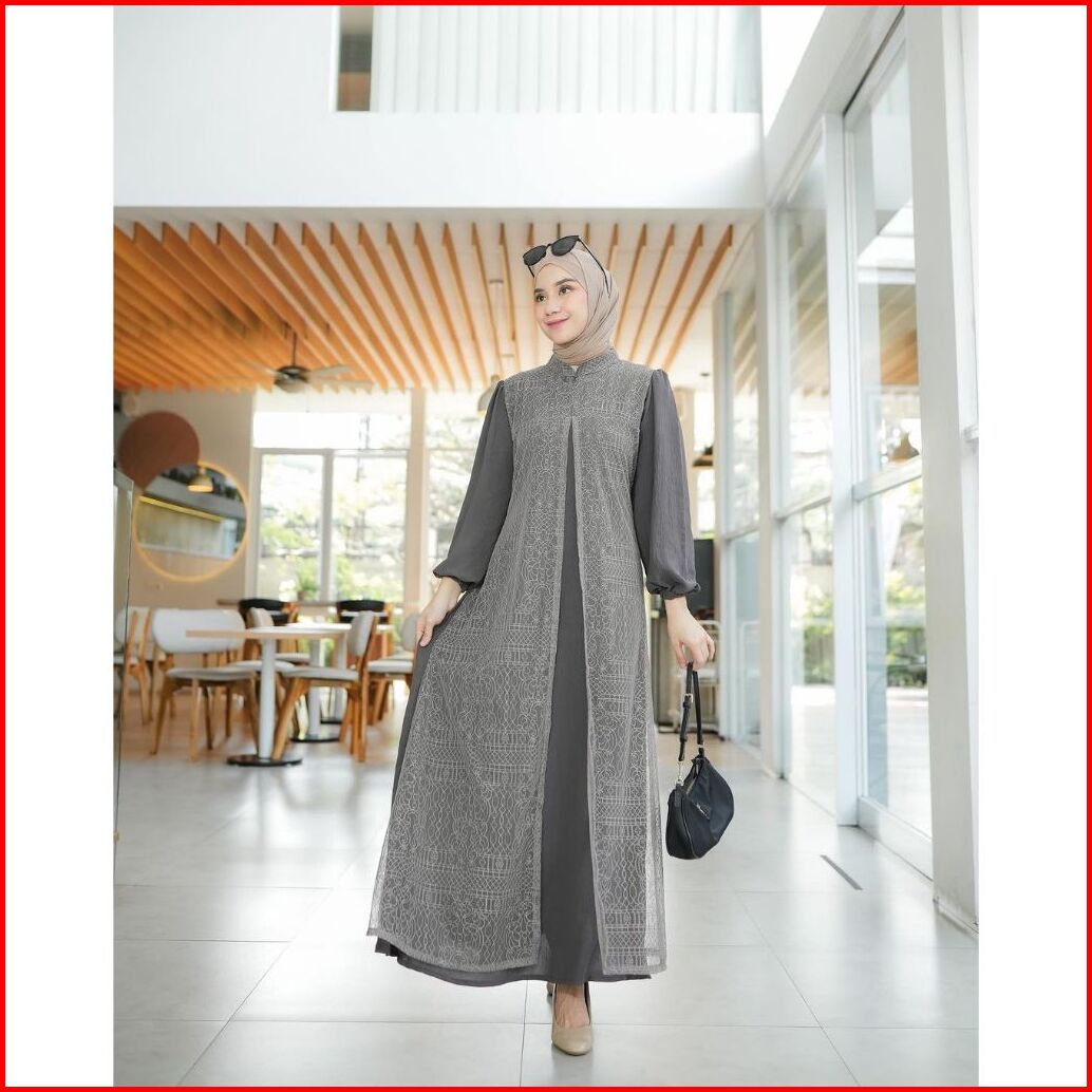 Zalfa Dress Gamis Trendy Terbaru Bahan Crinkle Mix Brokat Chantily Anggun Mewah Cantik Elegant