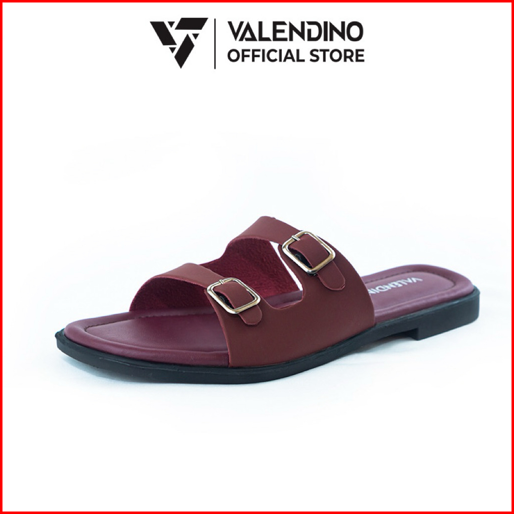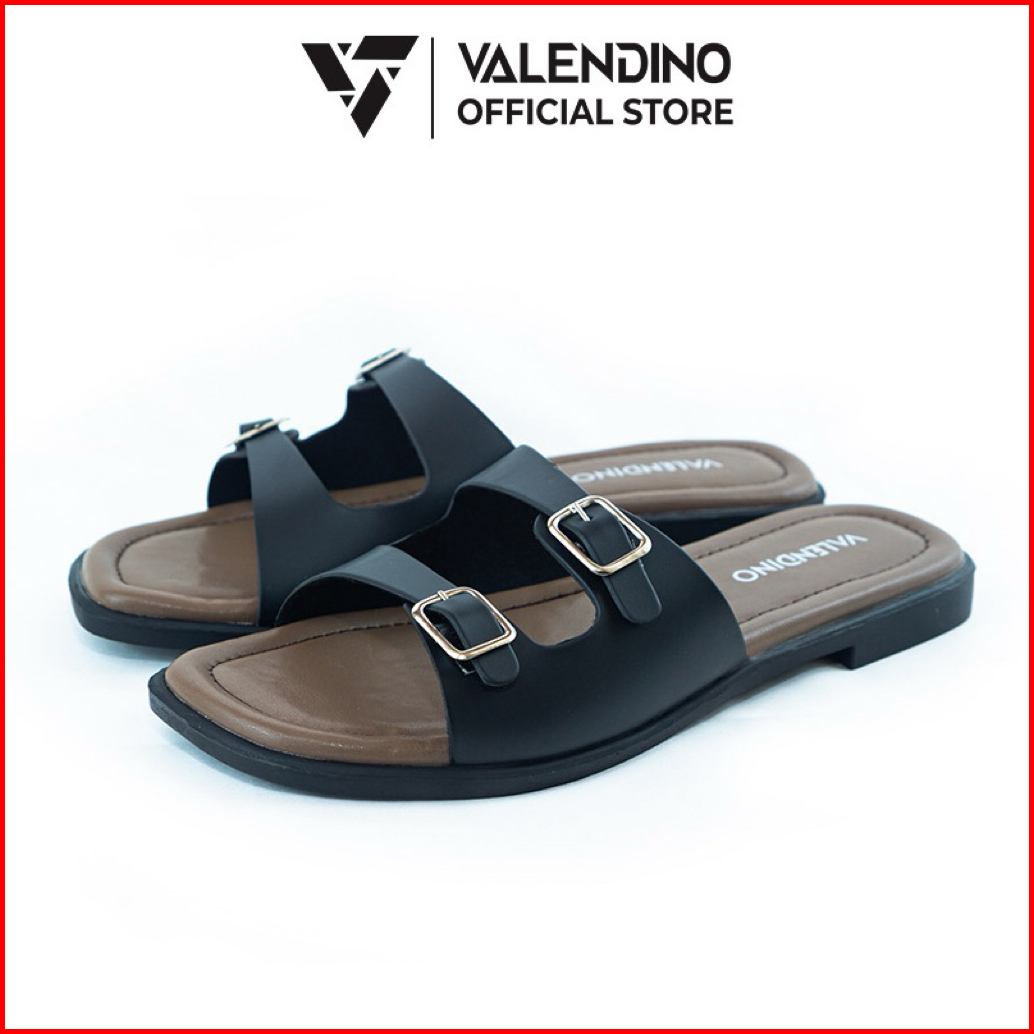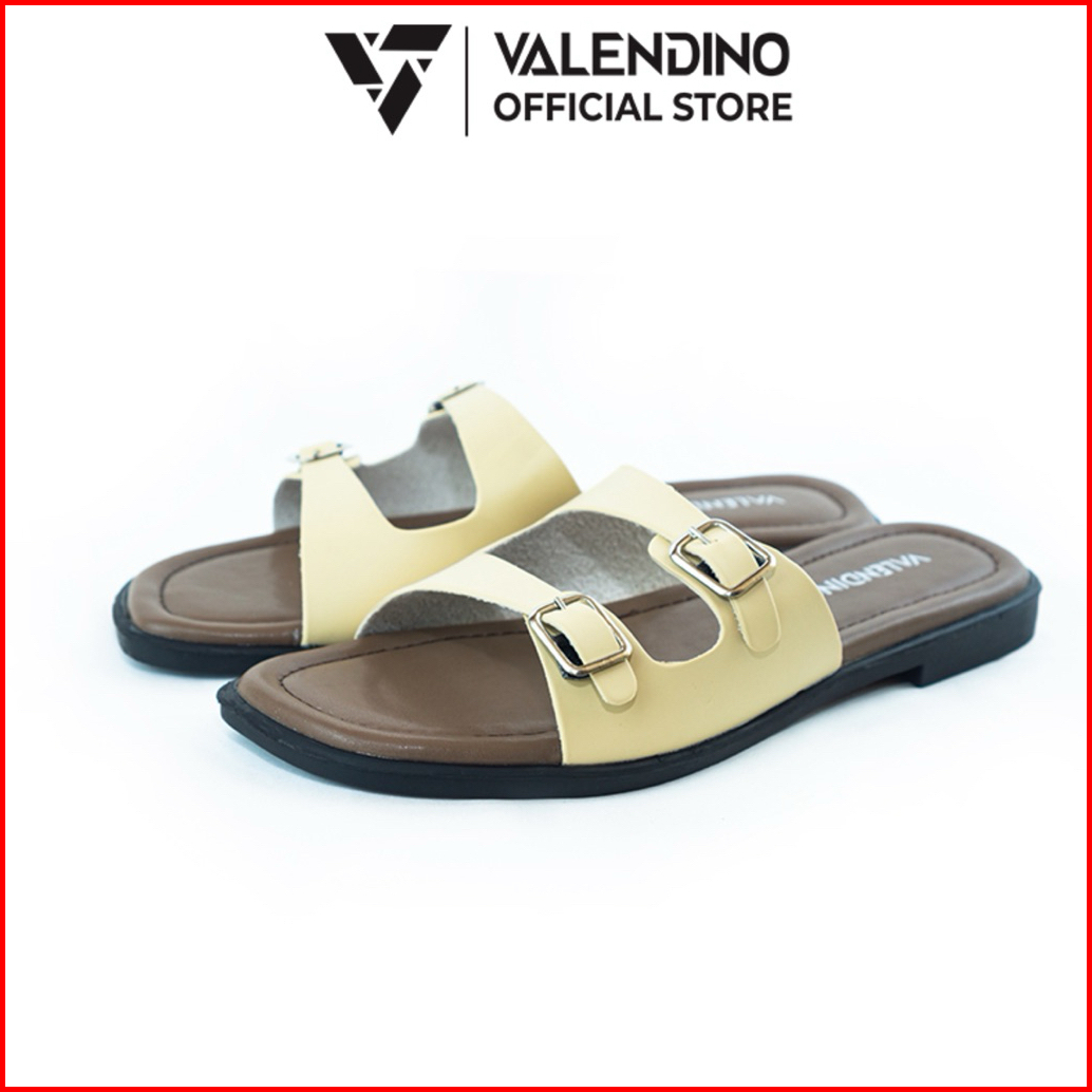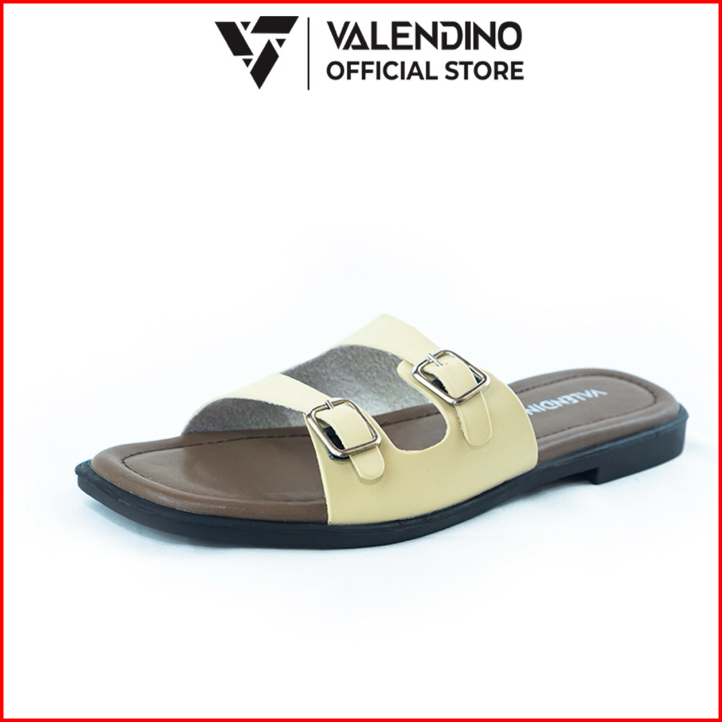Valendino Sandal Flat Wanita 2 Buckle Trendy Elegan Harga Murah