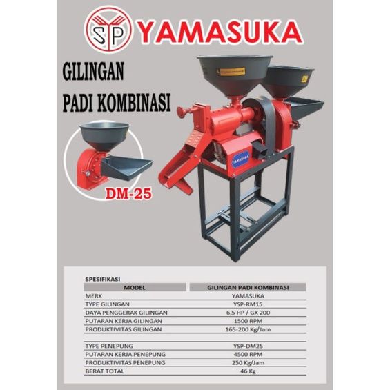Murah Mesin Selep Padi Giling Jadi Beras Yamasuka YSP-RM15DM Siap Pakai Engine Bensin 6,5HP Keren