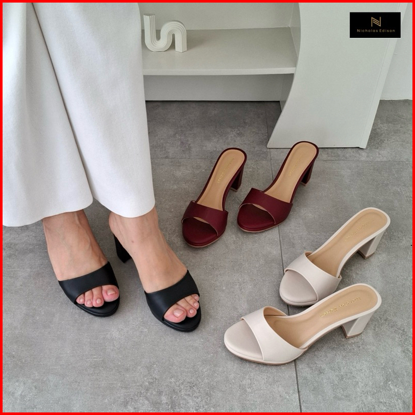 Nicholas Edison Heel Kanaya Sandal Heels Hak Tebal Slip On Terbaru