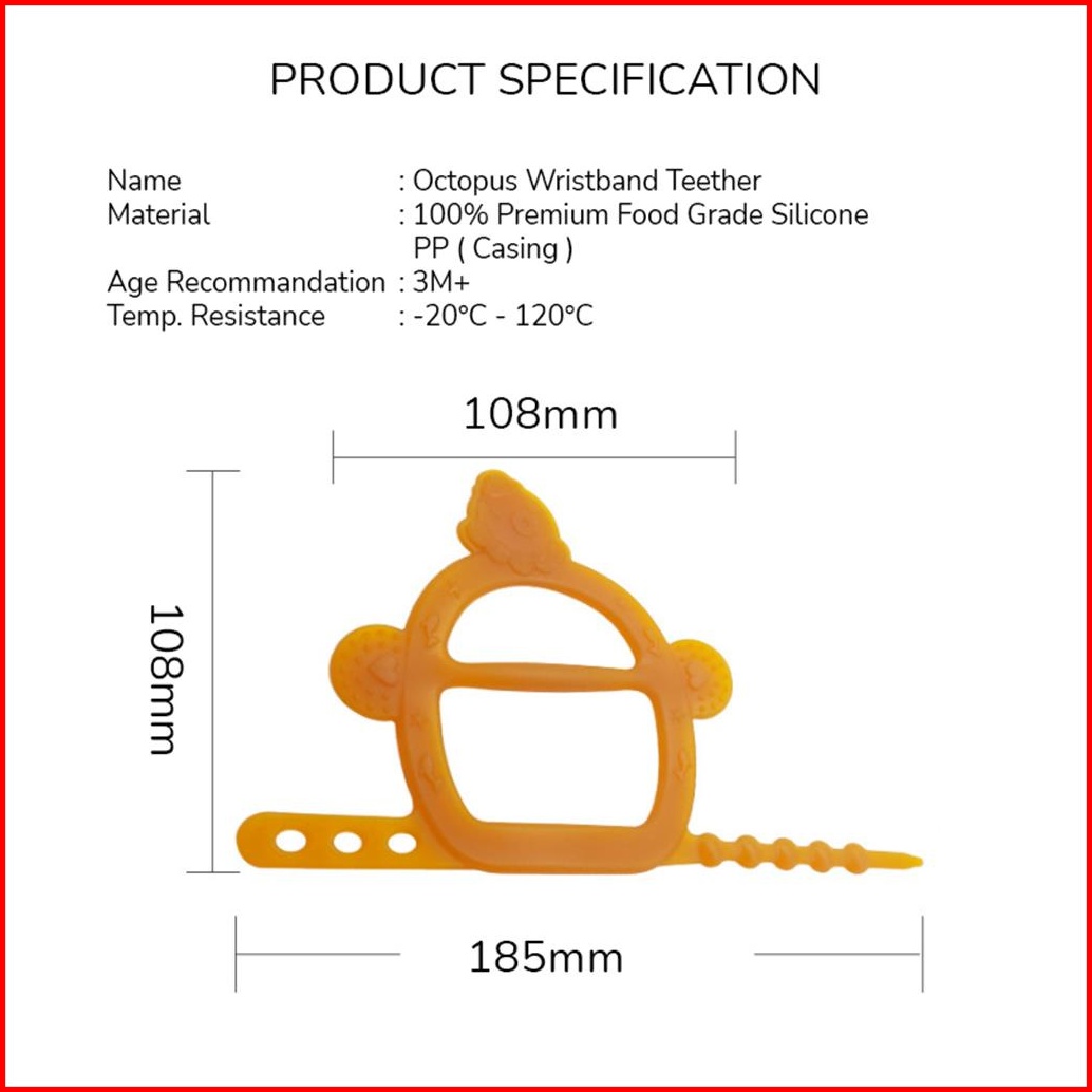 Coconi Octopus Wristband Teether With Case Mainan Gelang Gigit Bayi Anak Dapat Kotak