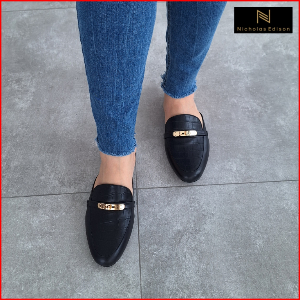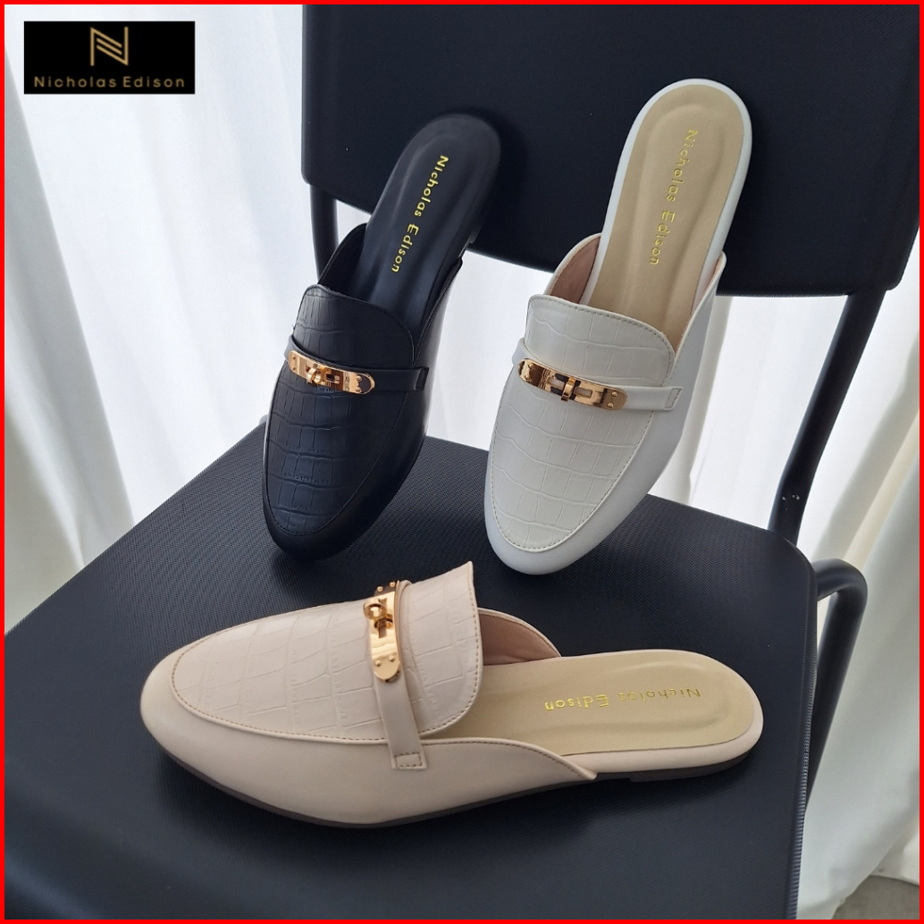 Nicholas Edison Flat Hiromi Sandal Mules Slip On Round Toe Terbaru