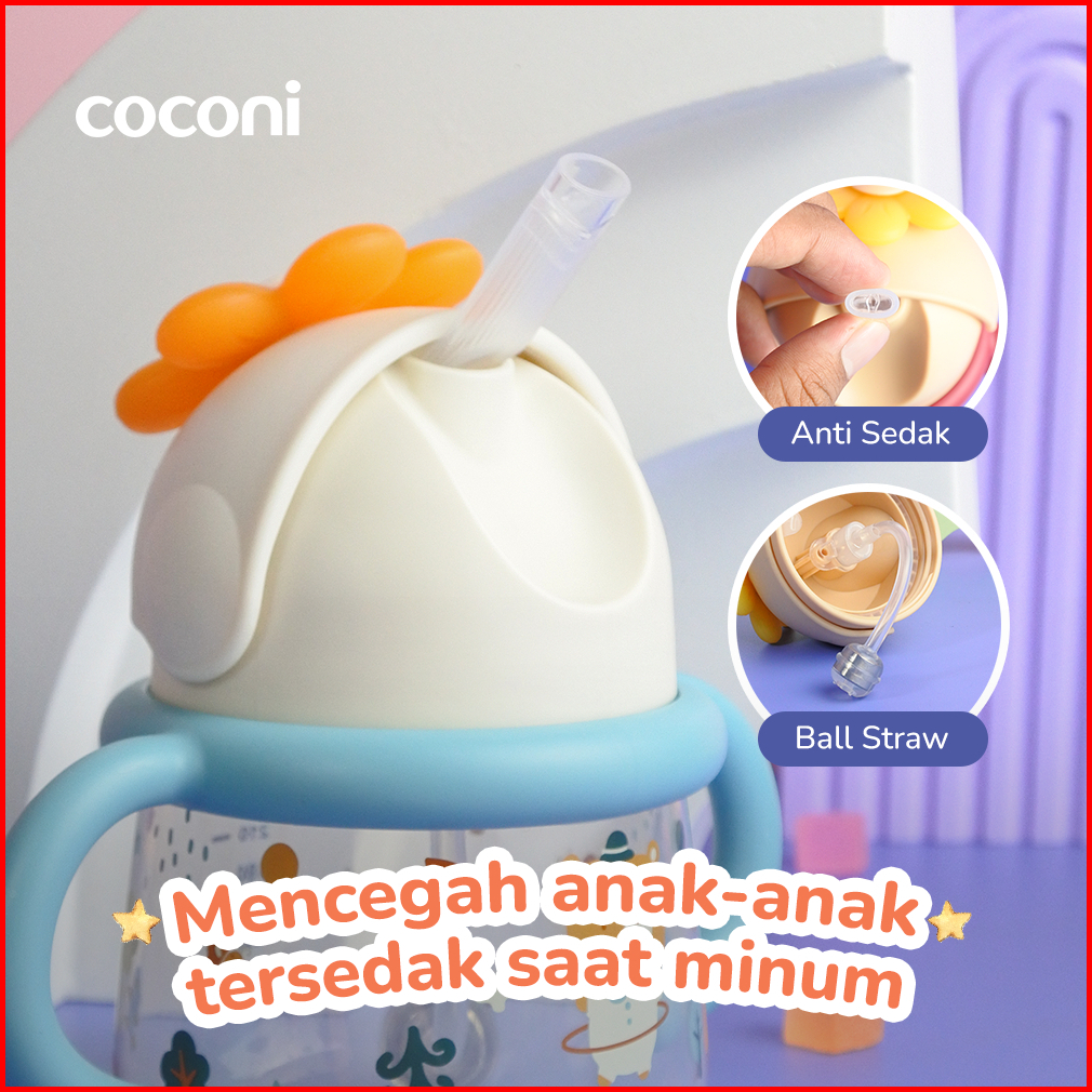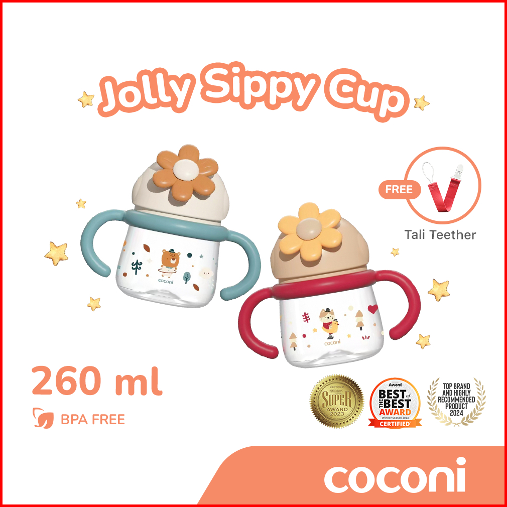 Coconi Jolly Sippy Cup 260ml Bonus Strap Teether Pacifier Botol Minum Bayi Anak Bahan Dengan Sedotan Pemberat Pp Bpa Fre