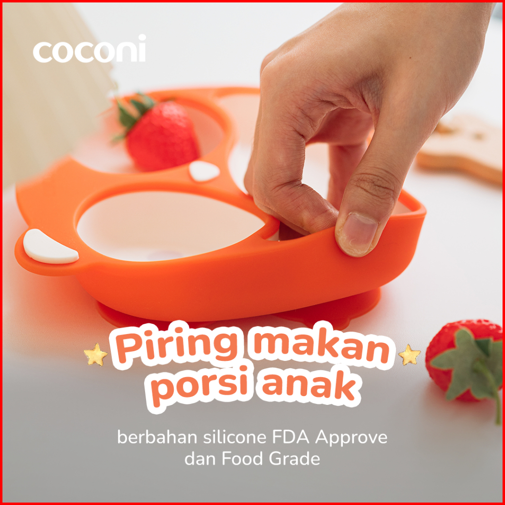 Coconi Panda Divided Silicone Suction Plate Piring Makan Anak Bayi Silikon Perekat Sekat Tiga