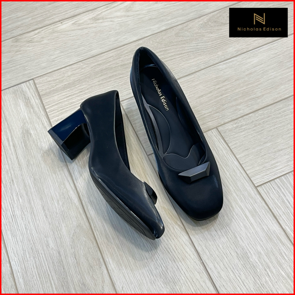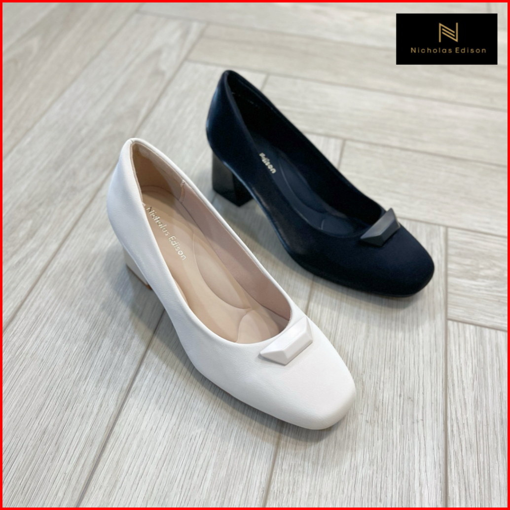Nicholas Edison Heel Chelsea Sepatu Pumps Block Heels Square Formal Wanita