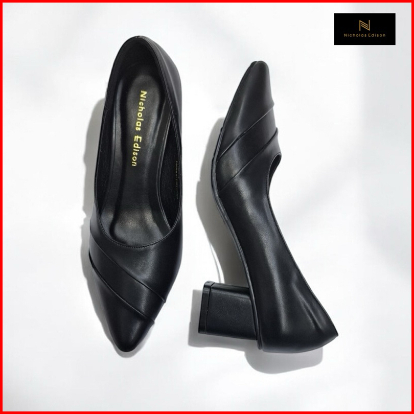 Nicholas Edison Heel Juno Sepatu Pumps Pointed Block Heels Formal Wanita