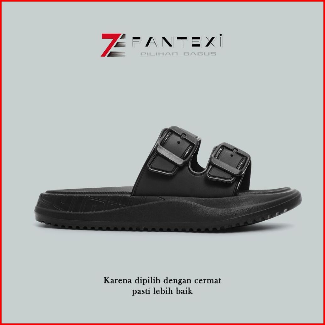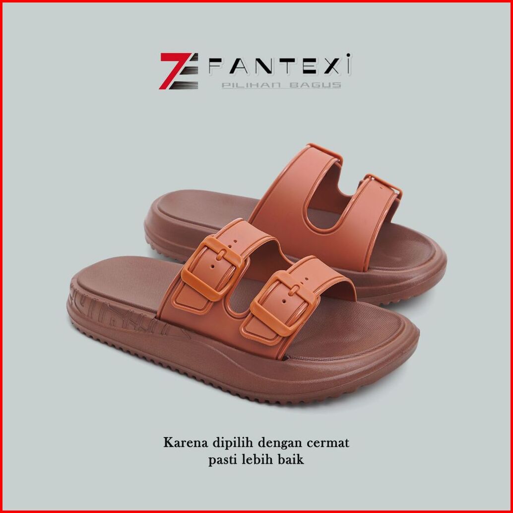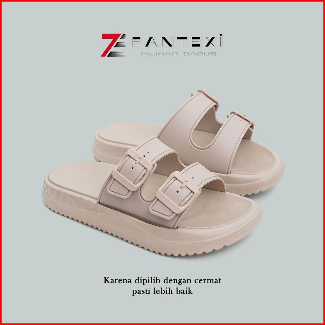 Sandal Slop Wanita Strip Dua Gesper Bahan Eva Anti-slip