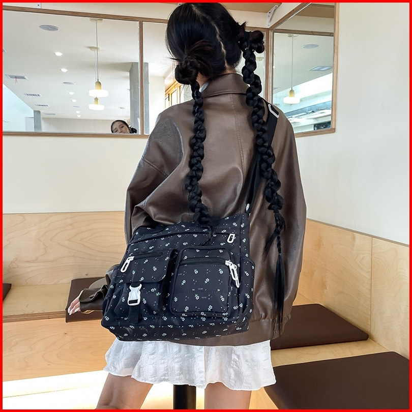 Mismi Dante Bag Tas Selempang Wanita Motif Flower On Black Sling Bag Korea Perempuan Stylish - 42d