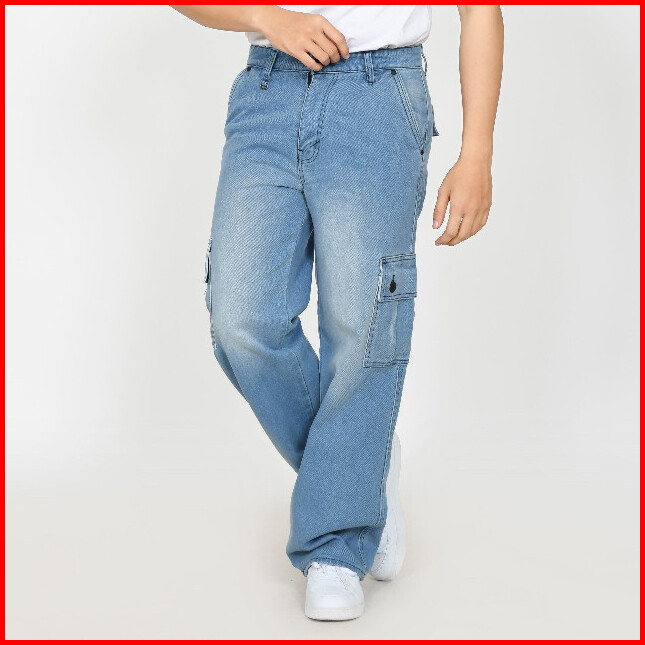 Civity Celana Cargo Jeans Panjang Pria Loose Fit Gombrong Standard Skena