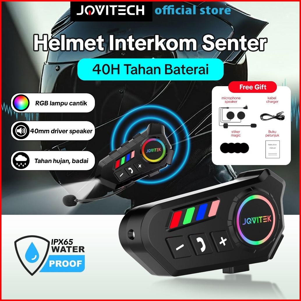Jovitech T06 Bluetooth Helmet Talkie For Cycling Includes Microphone For Calls And Music Playback And Cool Led Lights