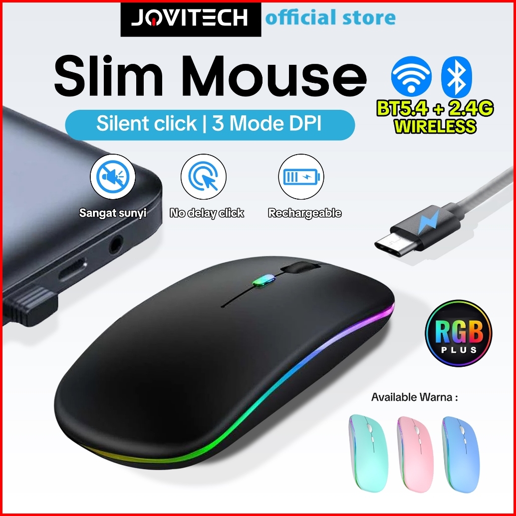 Jovitech 2024 New Mouse Gaming Rgb Led Wireless 2.4g Bluetooth 5.1 Slim Mouse Silent Mouse Rechargeable 1600 Dp S9