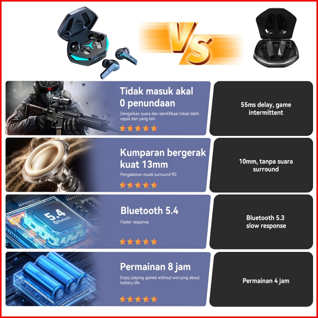 Jovitech Gm03 Tws Gaming Earphone True Wireless Bluetooth 5.5 Headset Low Latency Noise Reduction Earbuds With Mic