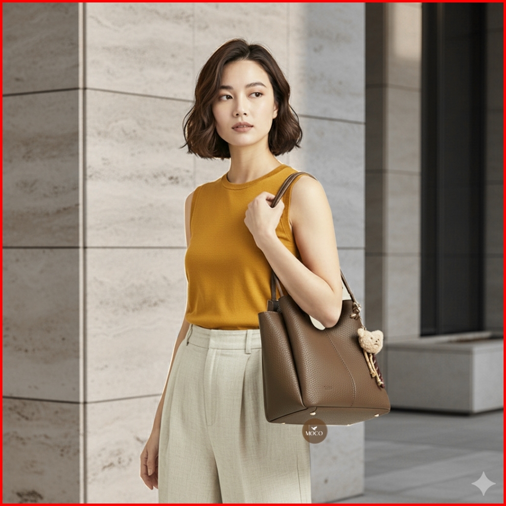 Moco - Gloria Bag Fashion Tas Wanita Gaya Korea Mewah Tas Shoulder Bag Anti Air Free Bag Charm Beruang Lucu 8808