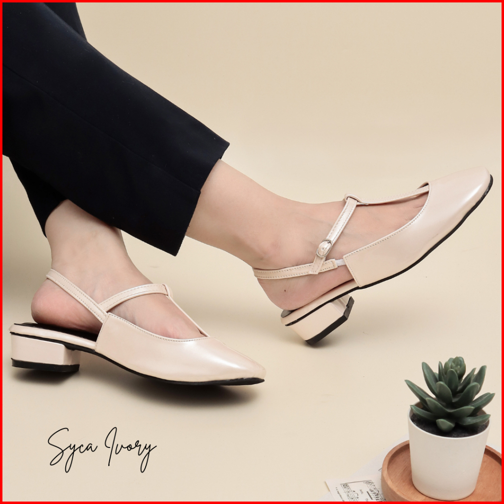 Quince Syca Sepatu Sandal Mules Wanita Hak 3 Cm