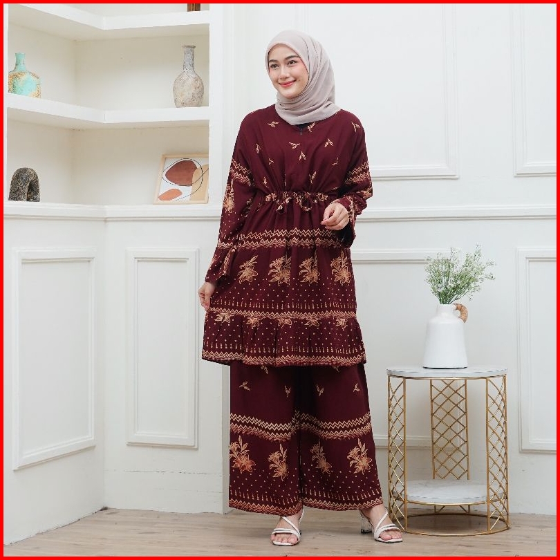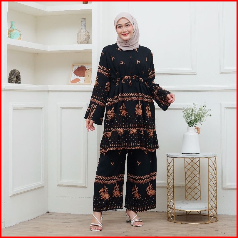 Setelan Tunik Rayon Tali Serut Busui One Set Wanita Jumbo Ld 120 Batik Pekalongan