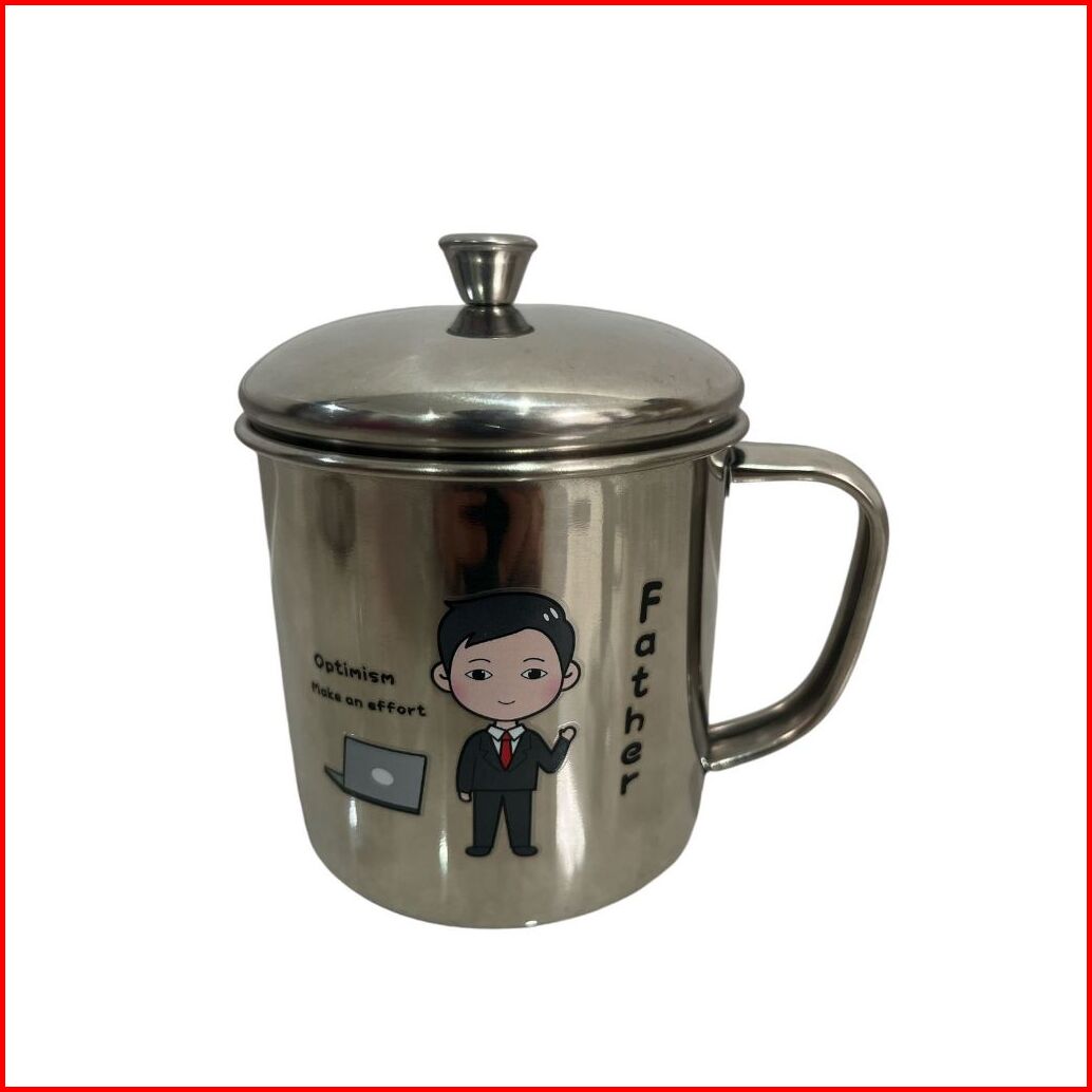 Bakindo Gelas Stainless Steel 304 Dengan Tutup Gelas Kartun Keluarga Gelas Family Stainless Cup Gelas Gambar Papa Mama