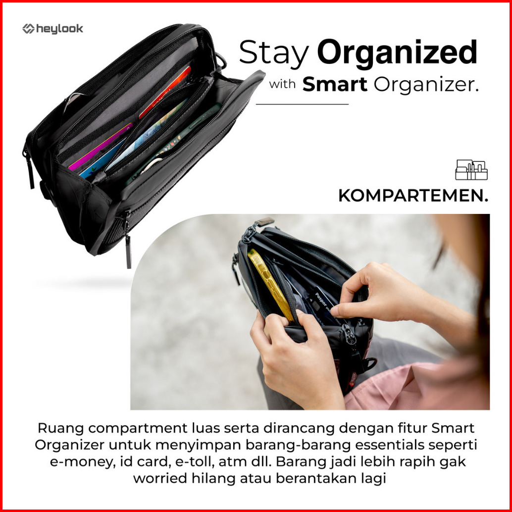Heylook - Tas Selempang Pria Vector Sling Bag Multyfungsi 4 In 1 Tas Hp Sling Phone Clutch Bag Cowok Waterproof Hand Bag