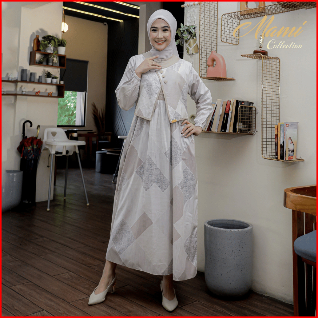 Mami Luniva Dress Gamis Rompi Katun Premium Busui Friendly Full Kancing