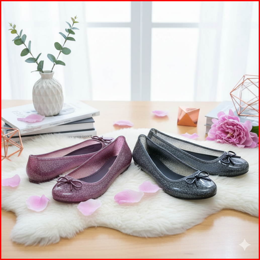 Porto Rose Glitter Flatshoes - Sepatu Wanita Nayaman Dipakai Anti Slip Sepatu Kerja Kuliah Sehari-hari