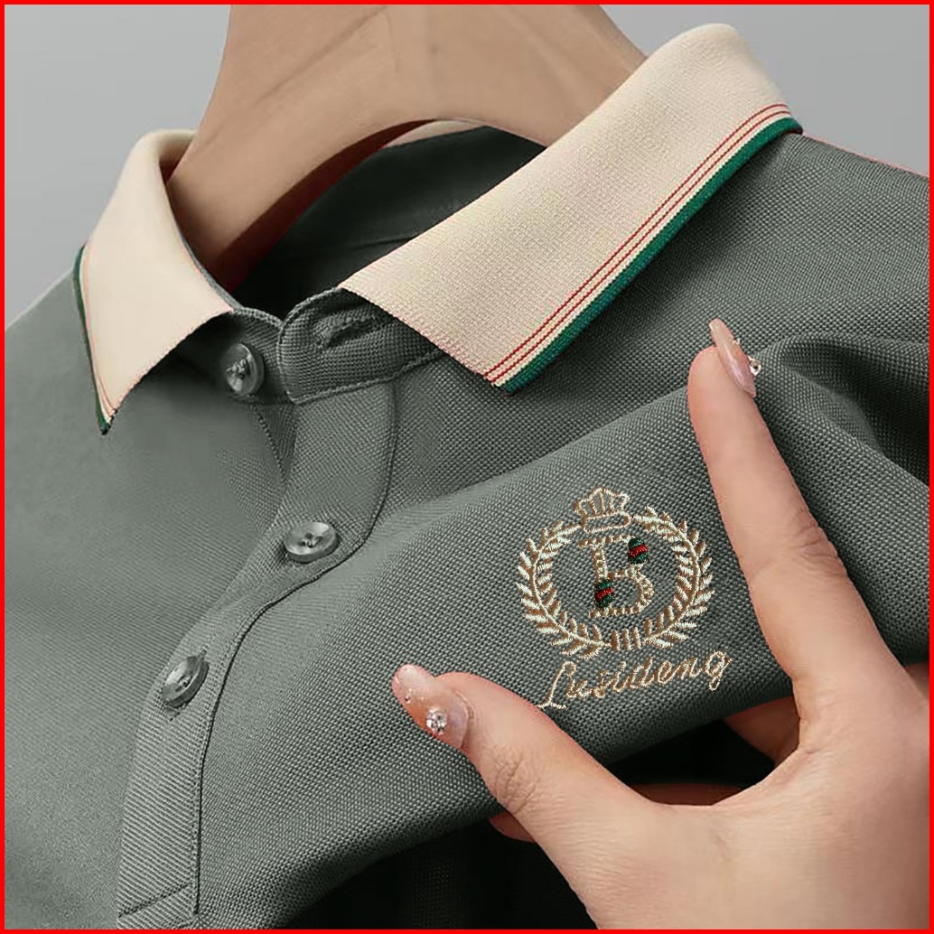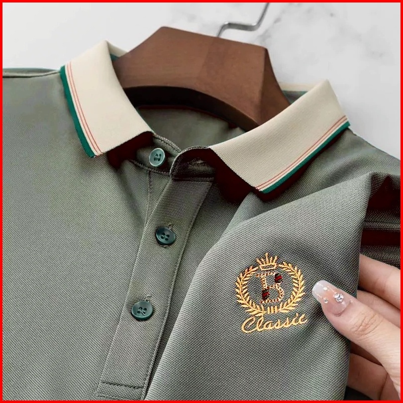 Polo Shirt Pria Korea Style Kaos Polo Pria Kasual Bordir Dada Eksklusif Desain Trendy Nyaman Warna Putih Hijau Army Ukur