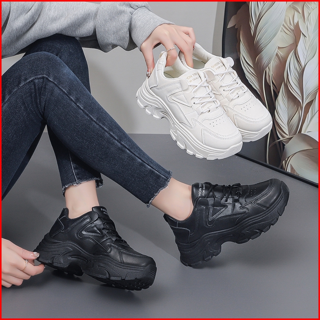Lurad Sepatu Sneakers Wanita Sm21 Polos Sol Tinggi Empuk Anti Slip Sneakers Cewek Anti Licin Fashion