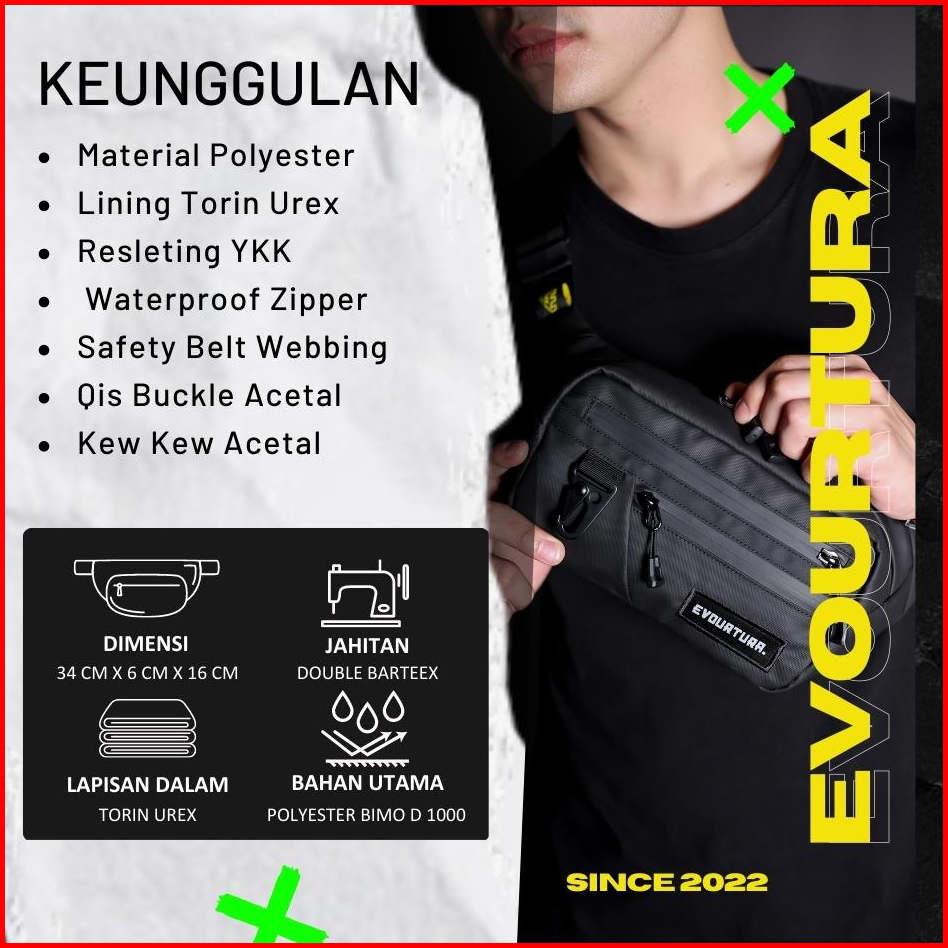 Waistbag Pria Waterproof Premium Tas Pinggang Pria Original Evourtura Walxer