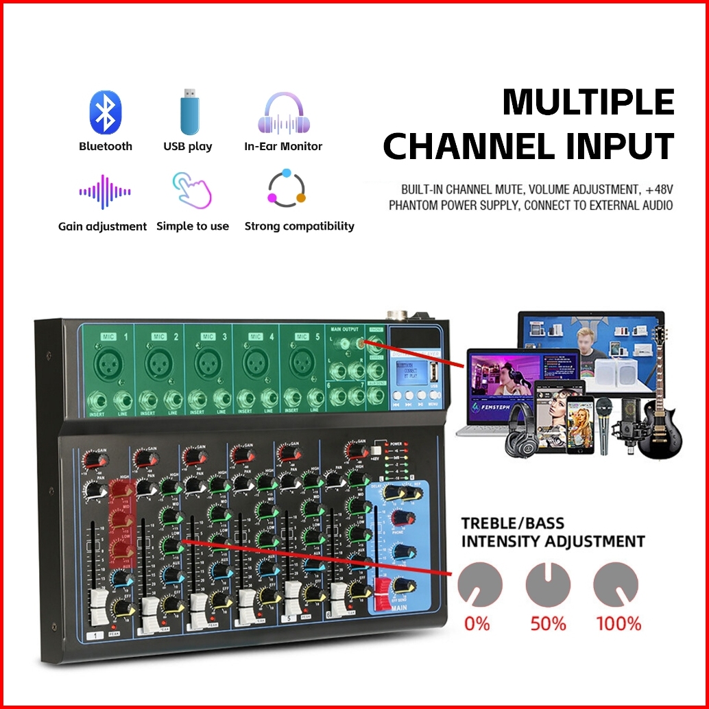 Profesional Mixer Audio 4 7channel Bluetooth Pc Mp3 Mixer Audio With 48v Phantom Power And Bluetooth