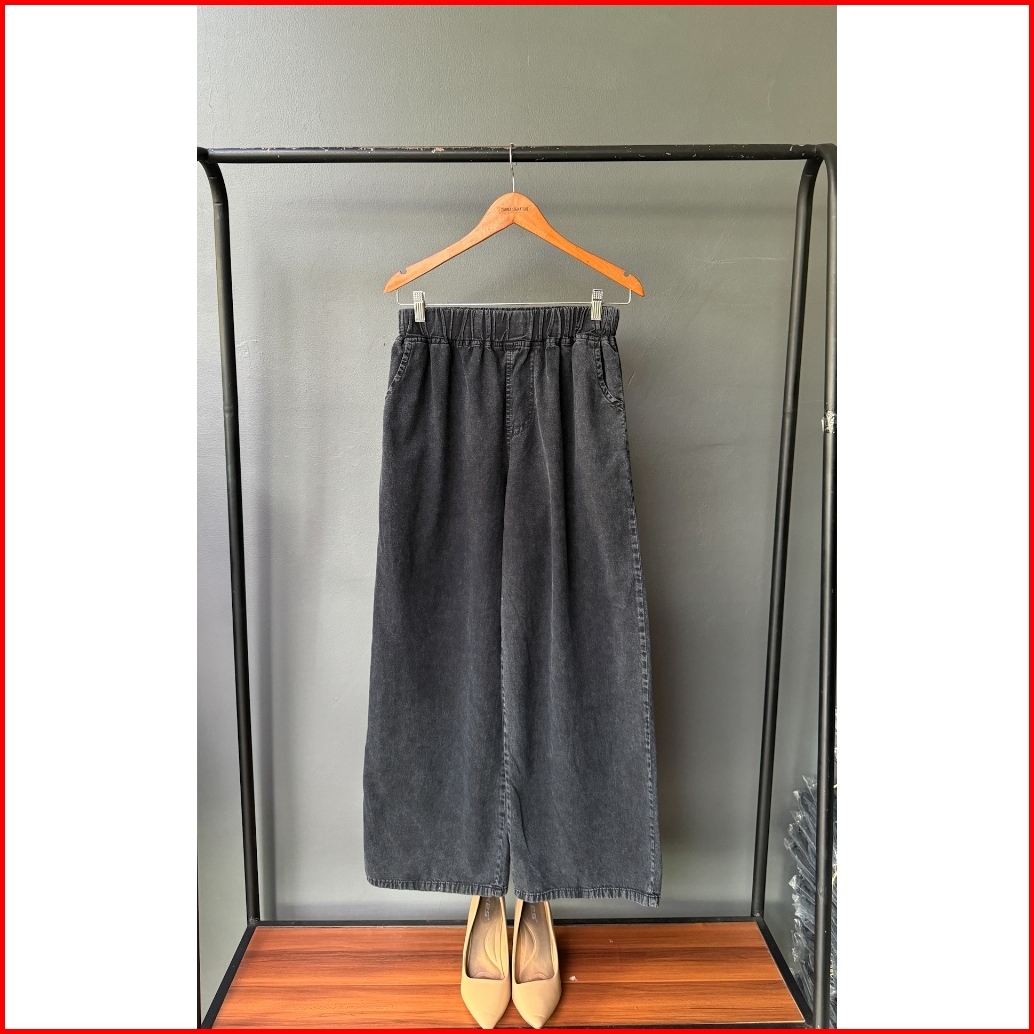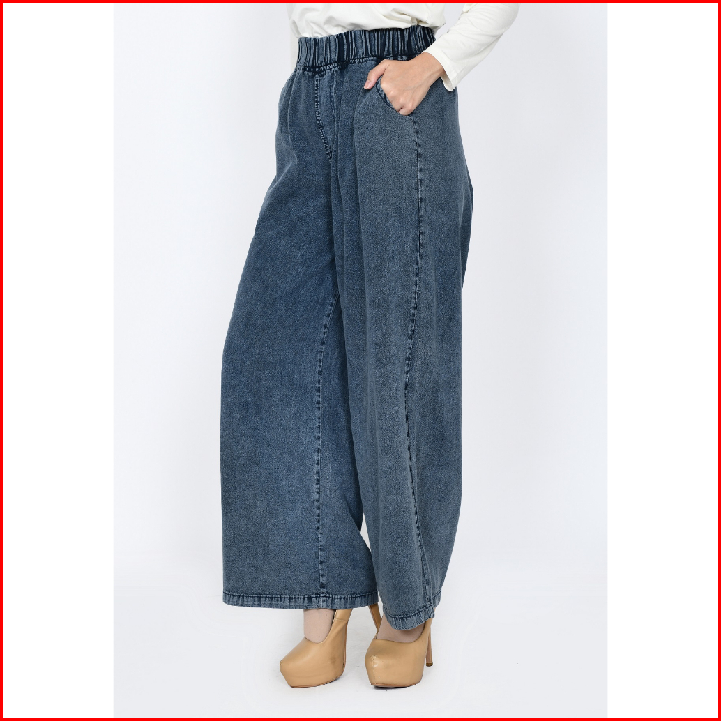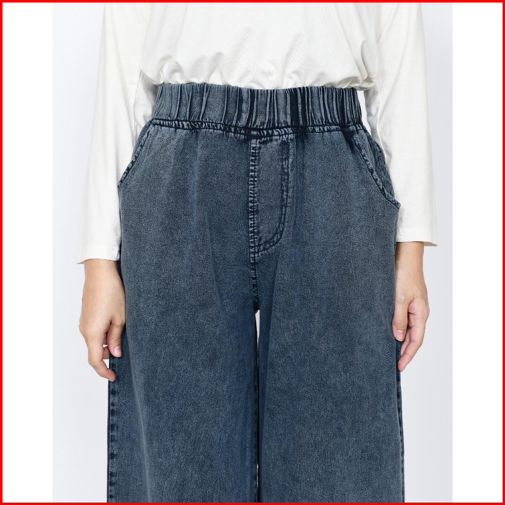 Celana Kulot Jeans Muslim Wanita Panjang 100cm Pinggang Karet Fit 48-65 Kg Lezahrasignature Cullote Kelly Snowblack