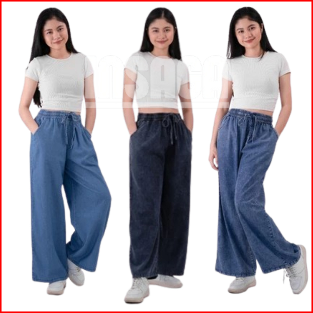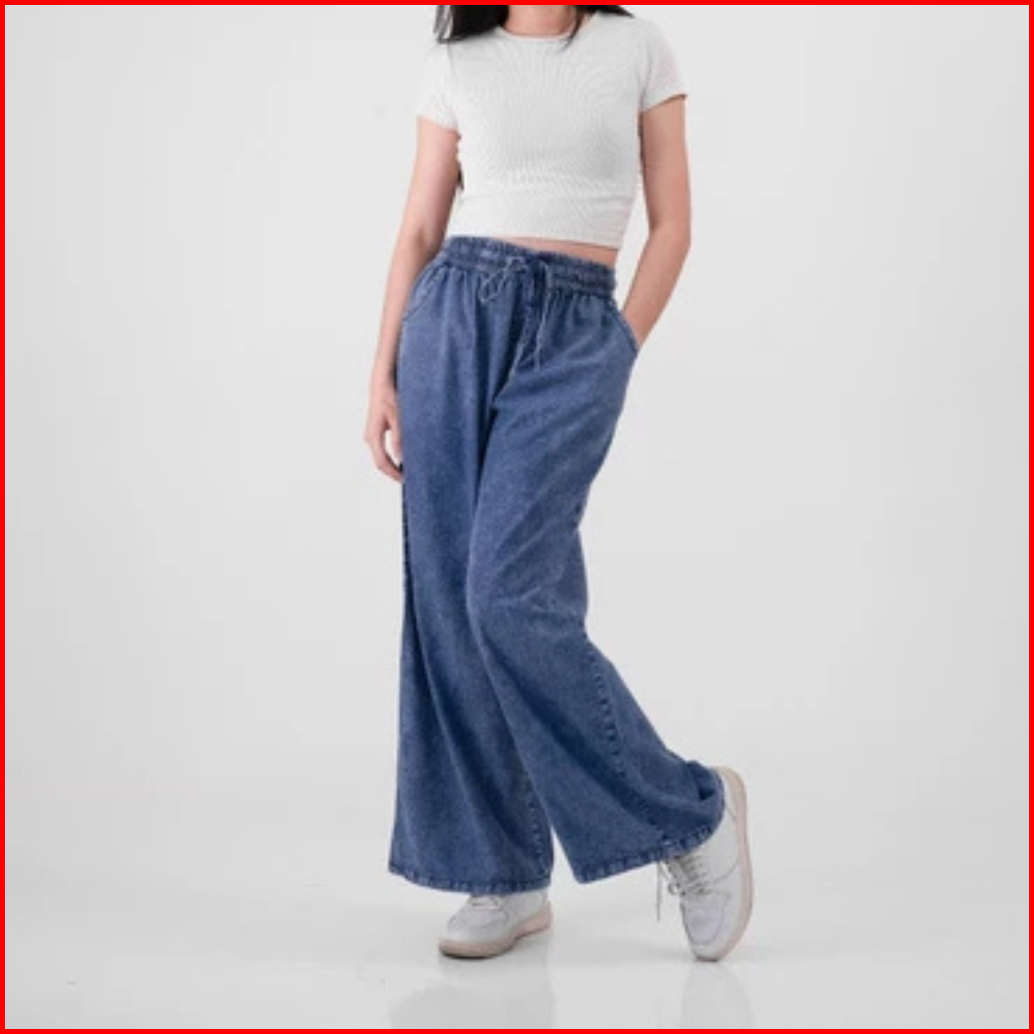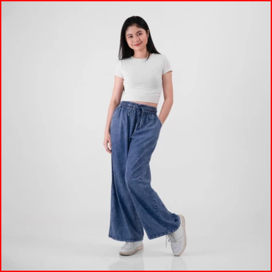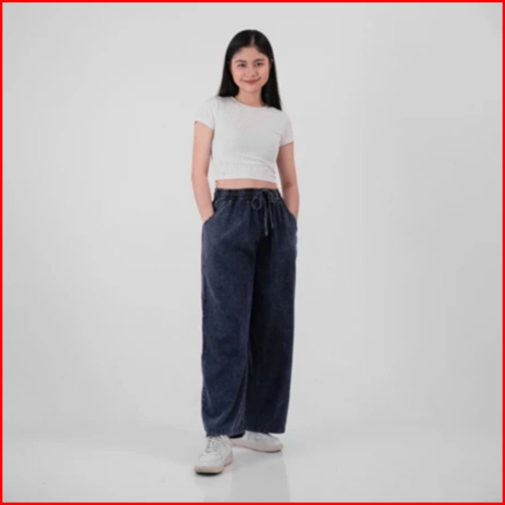 Insaga Celana Jeans Panjang Wanita Fit 100 Kg Kulot Cewek Big Size Elastis Pinggang Karet Nyaman Dipakai Baggy Gombrong
