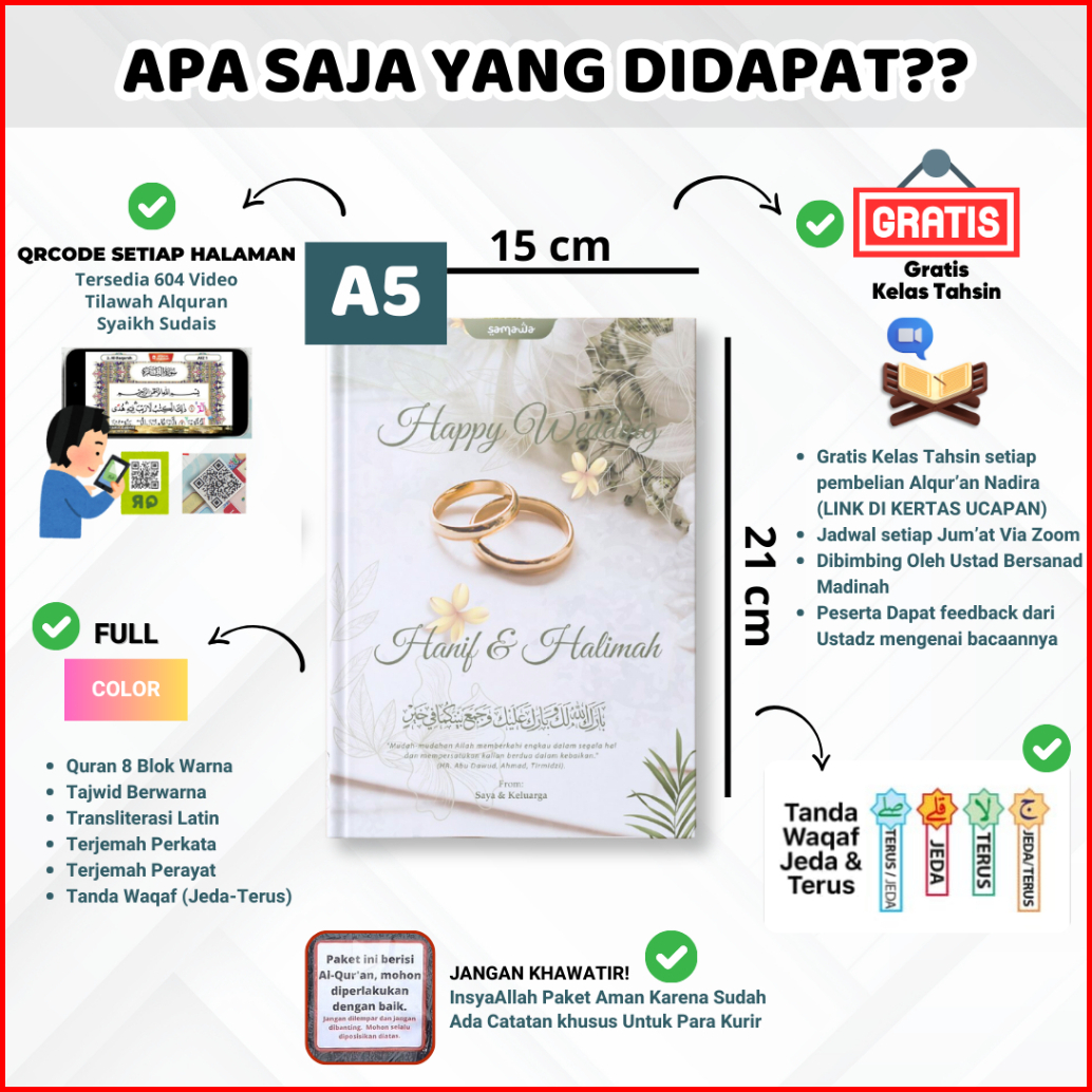 Al Quran Custom Nama Hadiah Pernikahan Hantaran Pernikahan - A5 Fitur Lengkap Latin Tajwid
