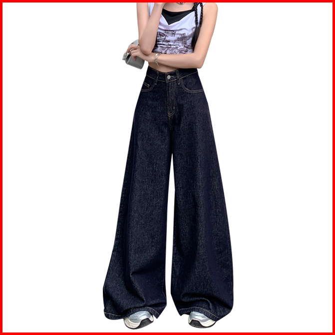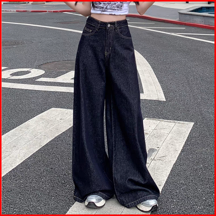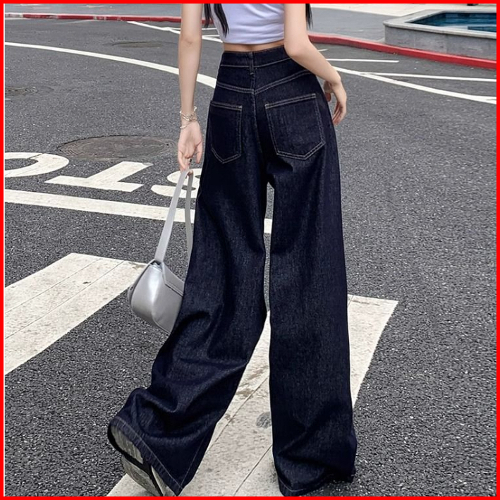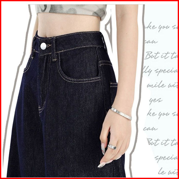 Gdtima Jeans Denim Wanita Retro High Waist Jeans Loose Kekinian Kaki Lebar