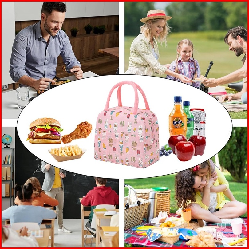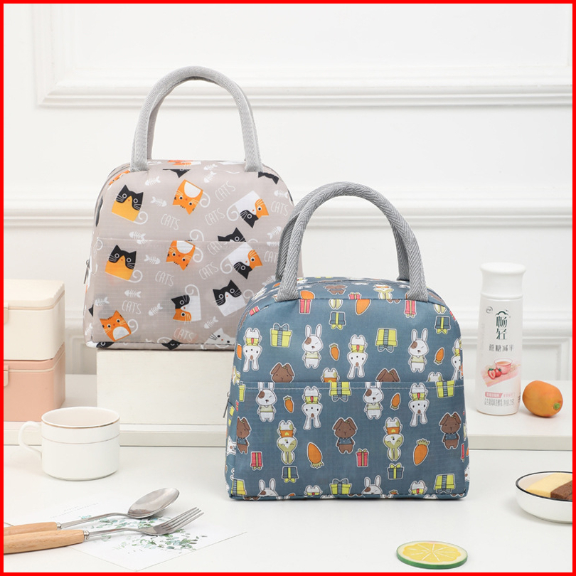 Fivevoo Tas Makan Siang Pola Lucu Tas Bekal Botol Kotak Makan Anak Lunch Box Kemasan Makanan Lunch Bag